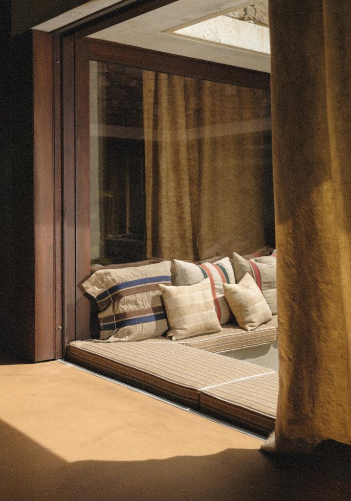 Durante questo processo, architetti e designer possono accedere alla Biblioteca tessile, del brand, un archivio vivo che raccoglie anni di ricerca, sperimentazione e memoria. Qui le trame raccontano storie di lavaggi, tinture, fibre naturali e combinazioni inattese. È uno spazio di esplorazione dove le idee possono prendere forma. La co-creazione prosegue con lo sviluppo di campioni, prove di colore e definizione delle finiture.