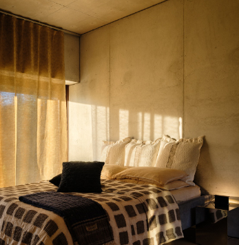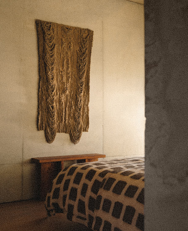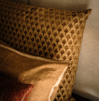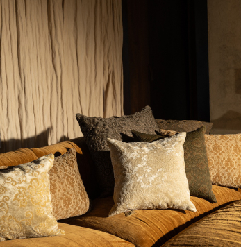 The House of Lyria fabrics by the metre shape interiors with character. Natural fibres, unconventional combinations and techniques, and mineral palettes create surfaces with a lived look, already lived in and therefore timeless. Materials open to design: curtains, upholstery fabrics and bespoke complements. Here, the beauty of imperfection becomes a language, building the project through layers of light, weight and tactility.