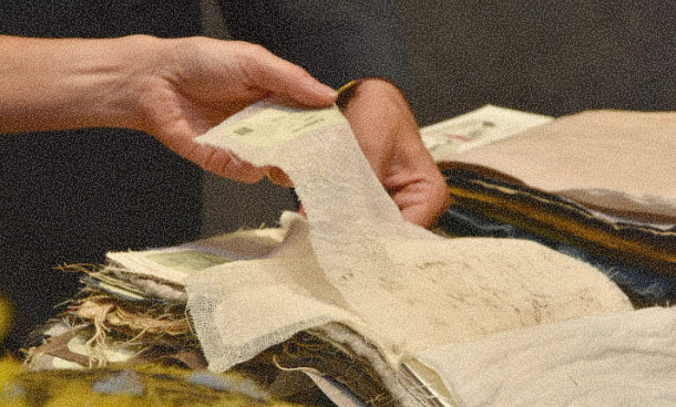 Our Textile Library is a living archive that preserves decades of research: over 30,000 types and rare historical fragments available for consultation upon request. It is not a static repository, but a cultural and design tool that connects memory and innovation. Here, weights, weaves and colours are explored, revealing genealogies of textures capable of sparking new design directions. Through workshops, the archive often generates bespoke variations and fabric families developed for specific projects.