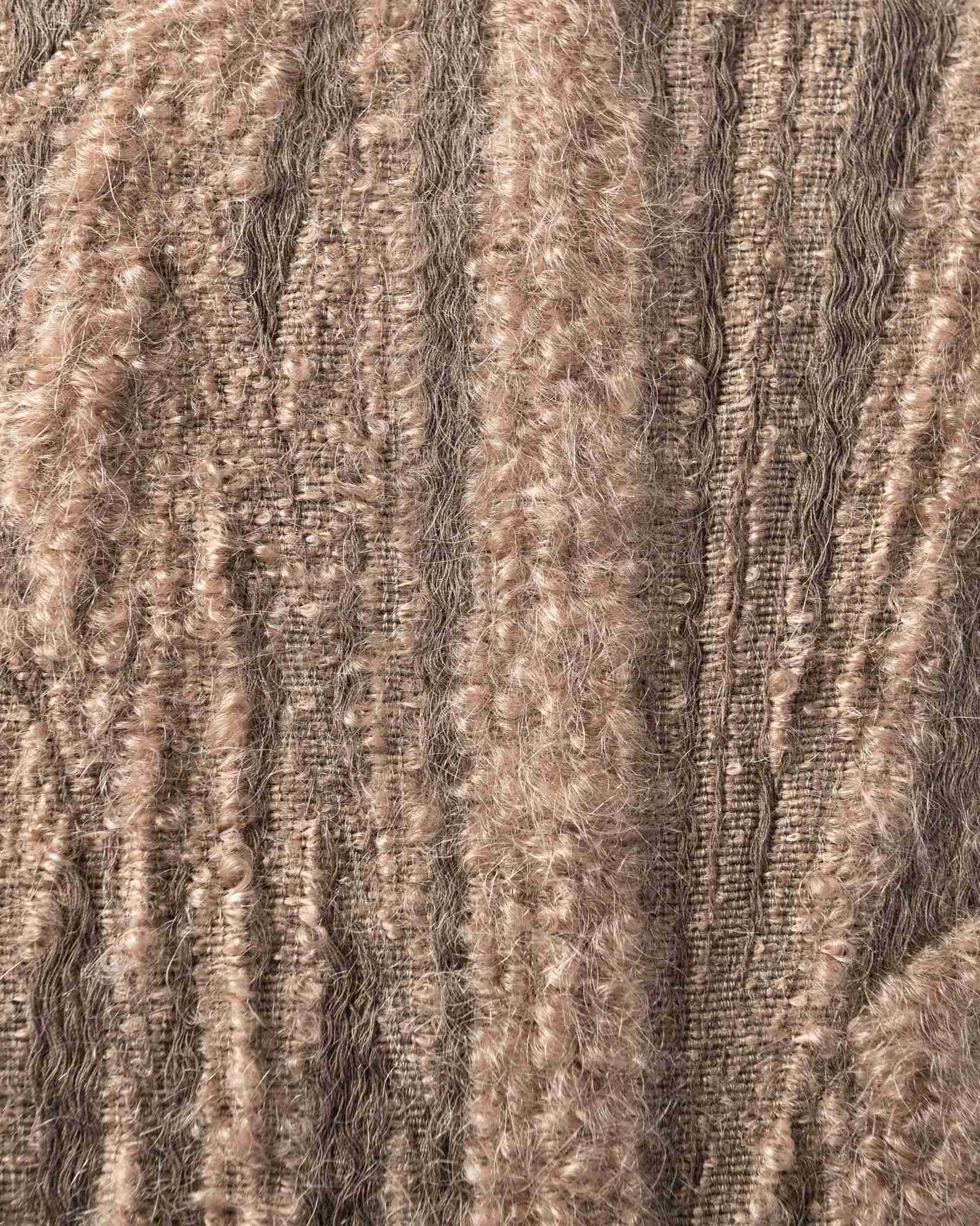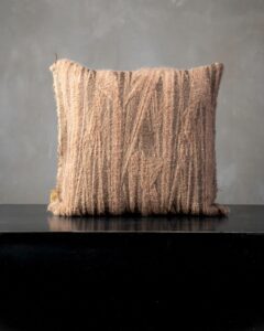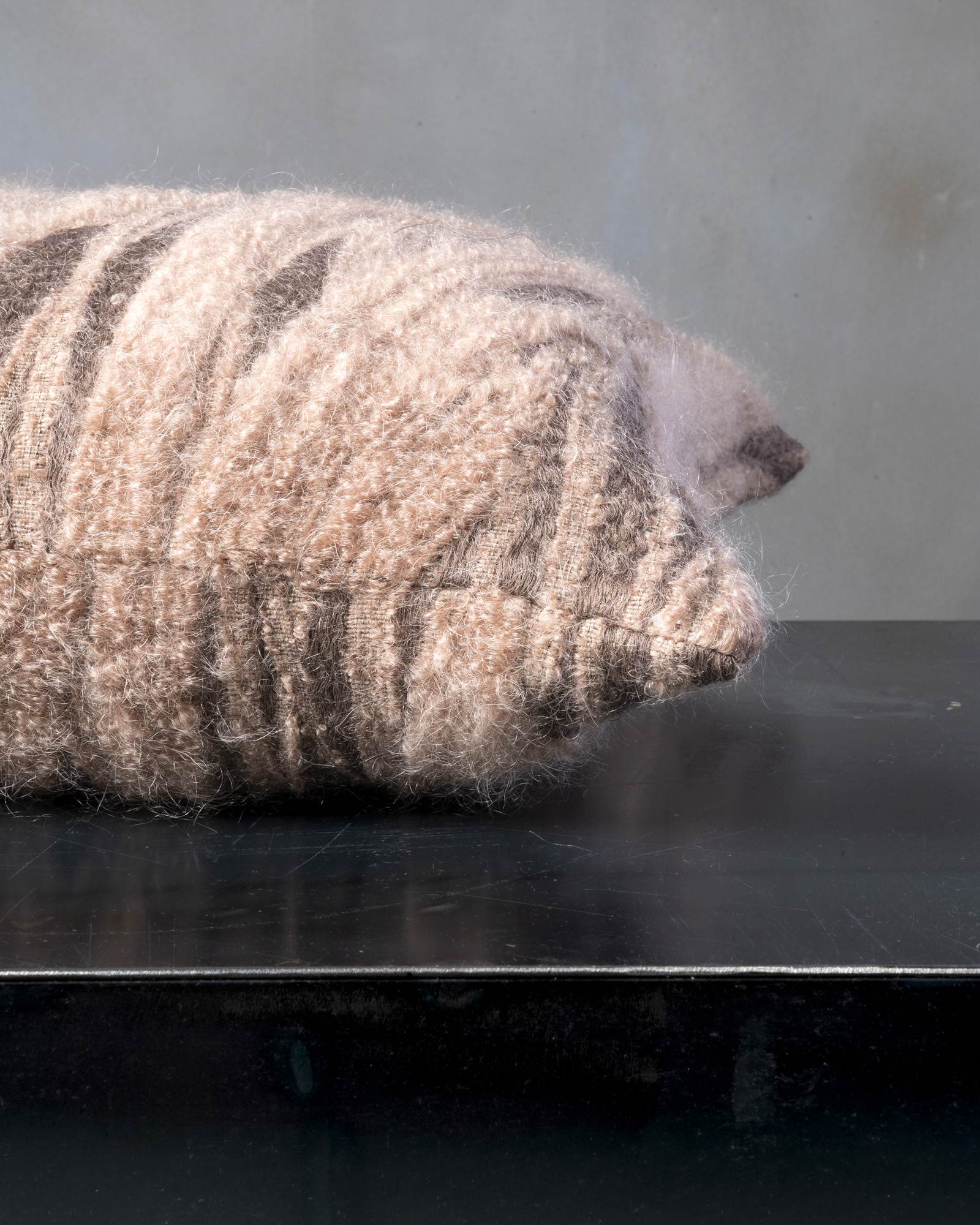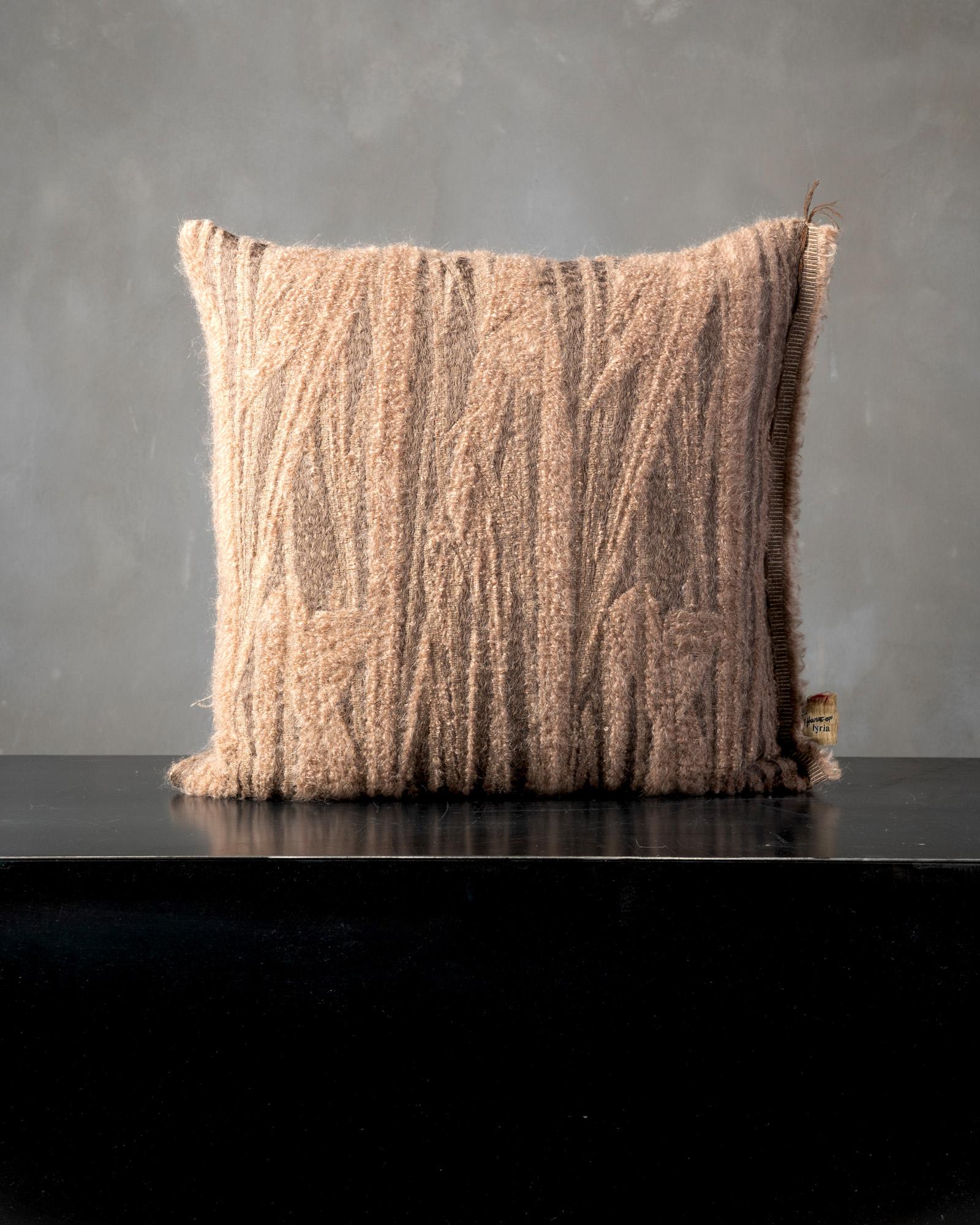 Decorative cushion in mohair. The soft hand envelops the material, conveying an intimate and composed sensation, where every detail finds its own balance. A silent echo of lived-in interiors, where time flows slowly between fabrics and light.