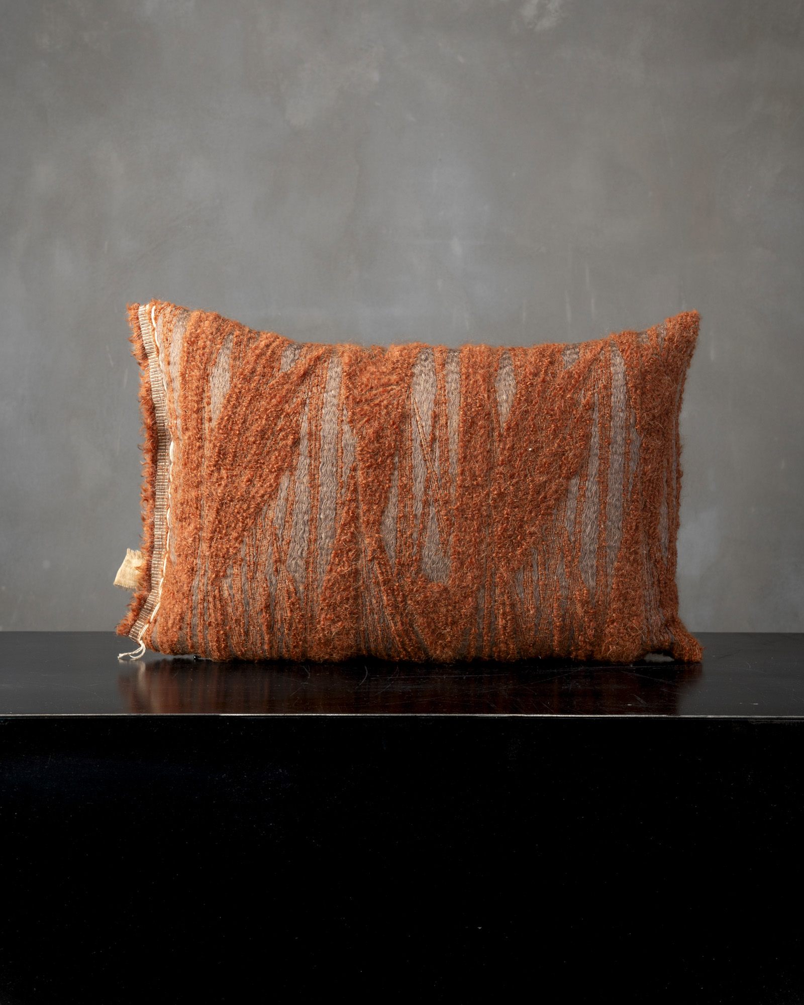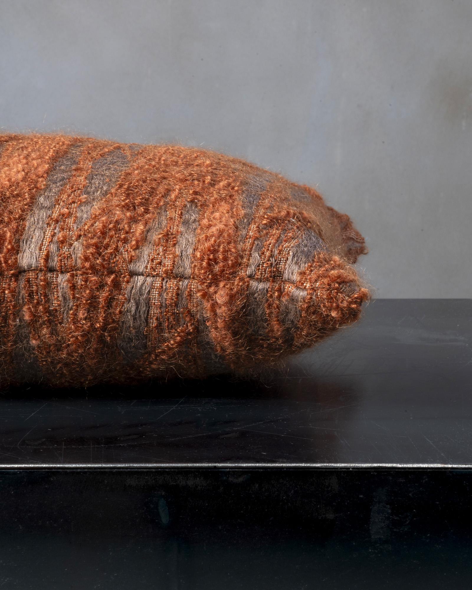 Decorative cushion in mohair. The soft hand envelops the material, conveying an intimate and composed sensation, where every detail finds its own balance. A silent echo of lived-in interiors, where time flows slowly between fabrics and light.