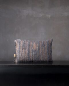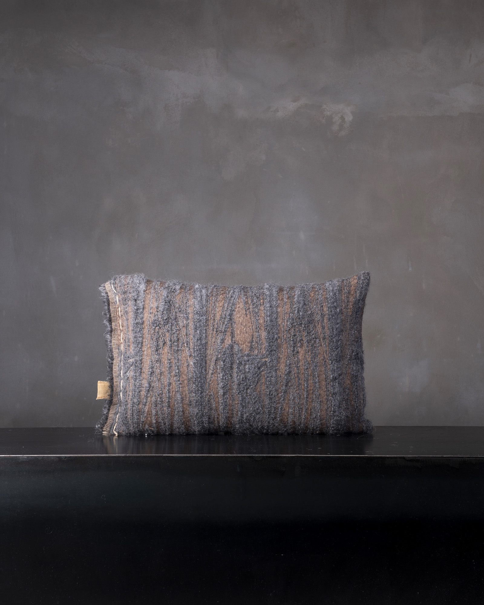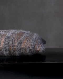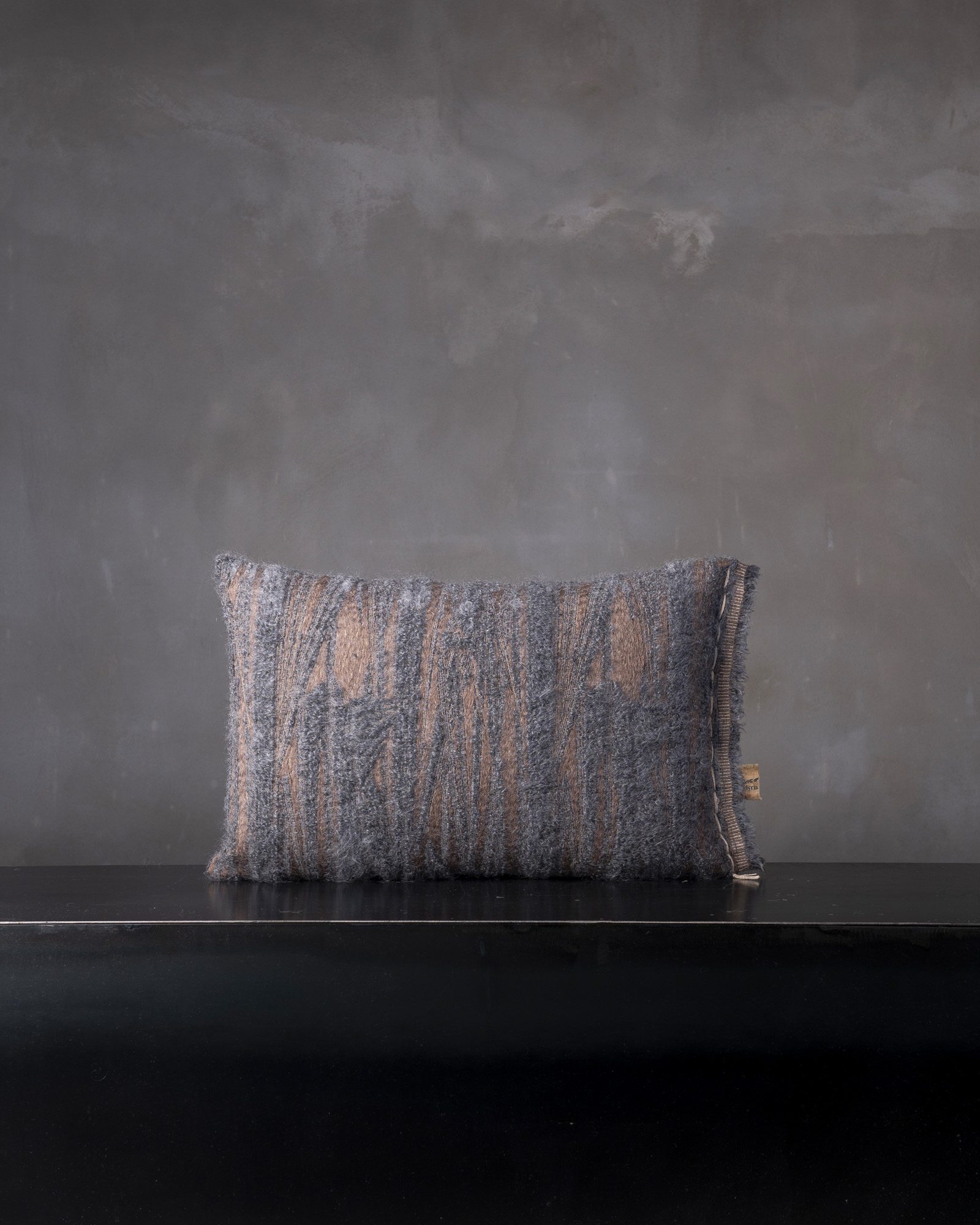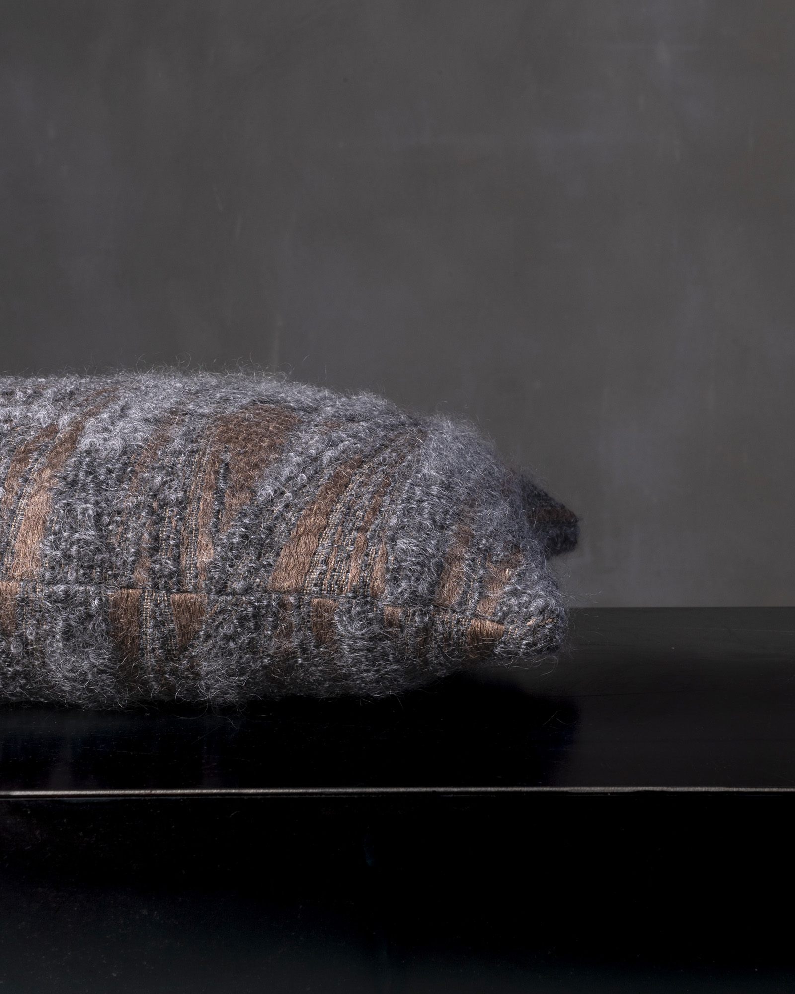 Decorative cushion in mohair. The soft hand envelops the material, conveying an intimate and composed sensation, where every detail finds its own balance. A silent echo of lived-in interiors, where time flows slowly between fabrics and light.