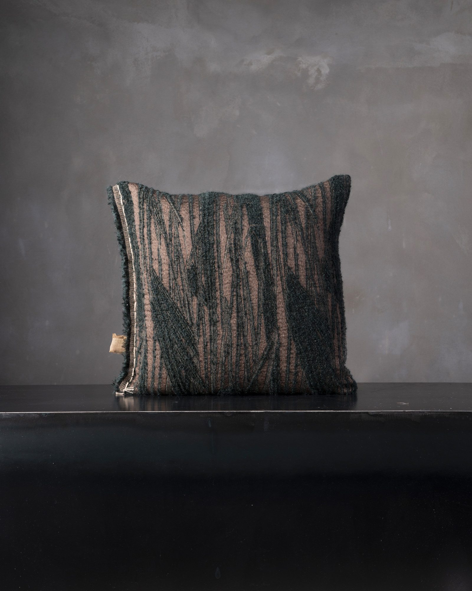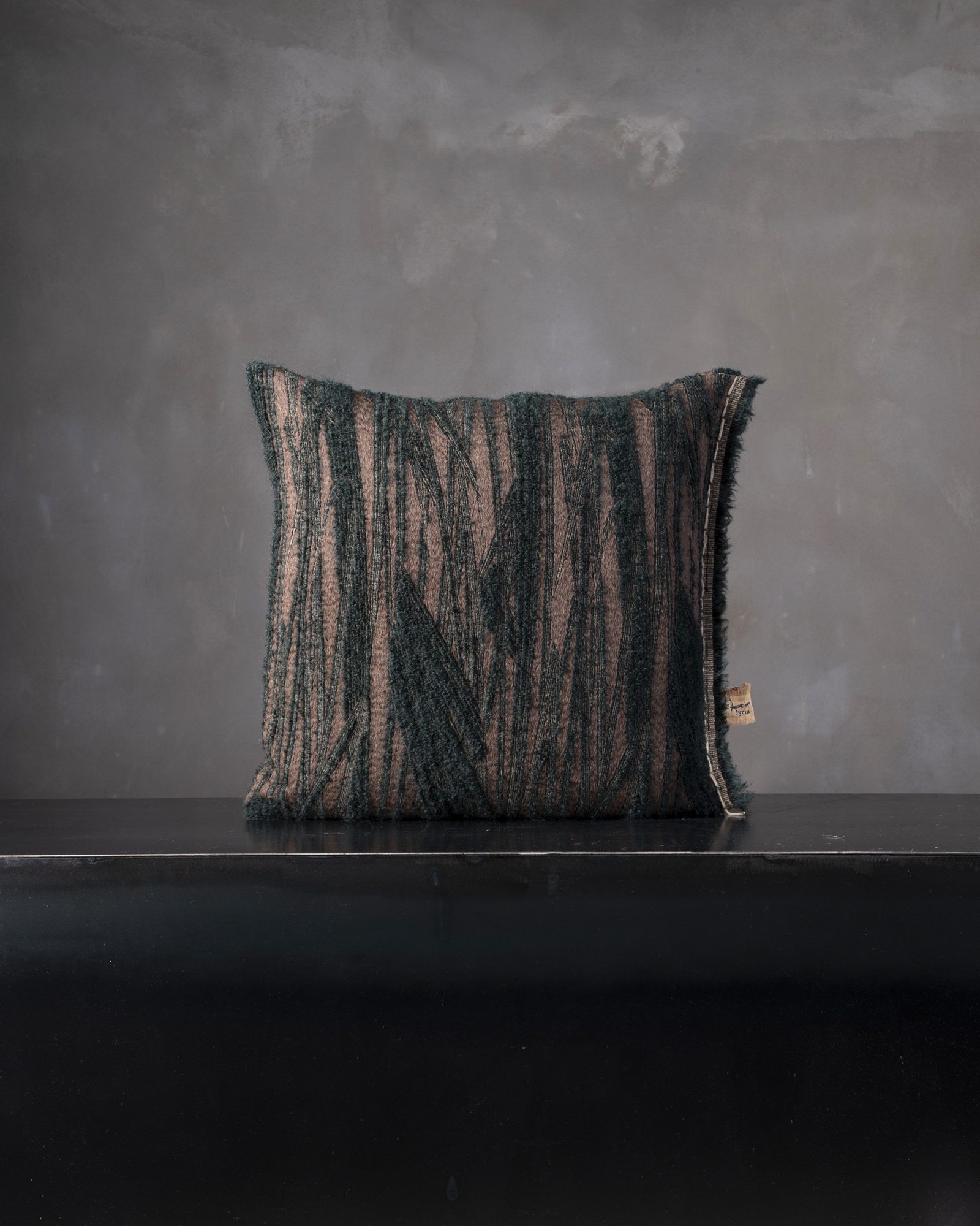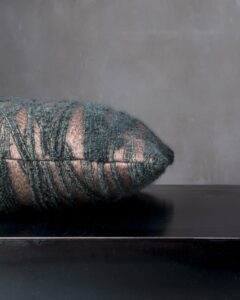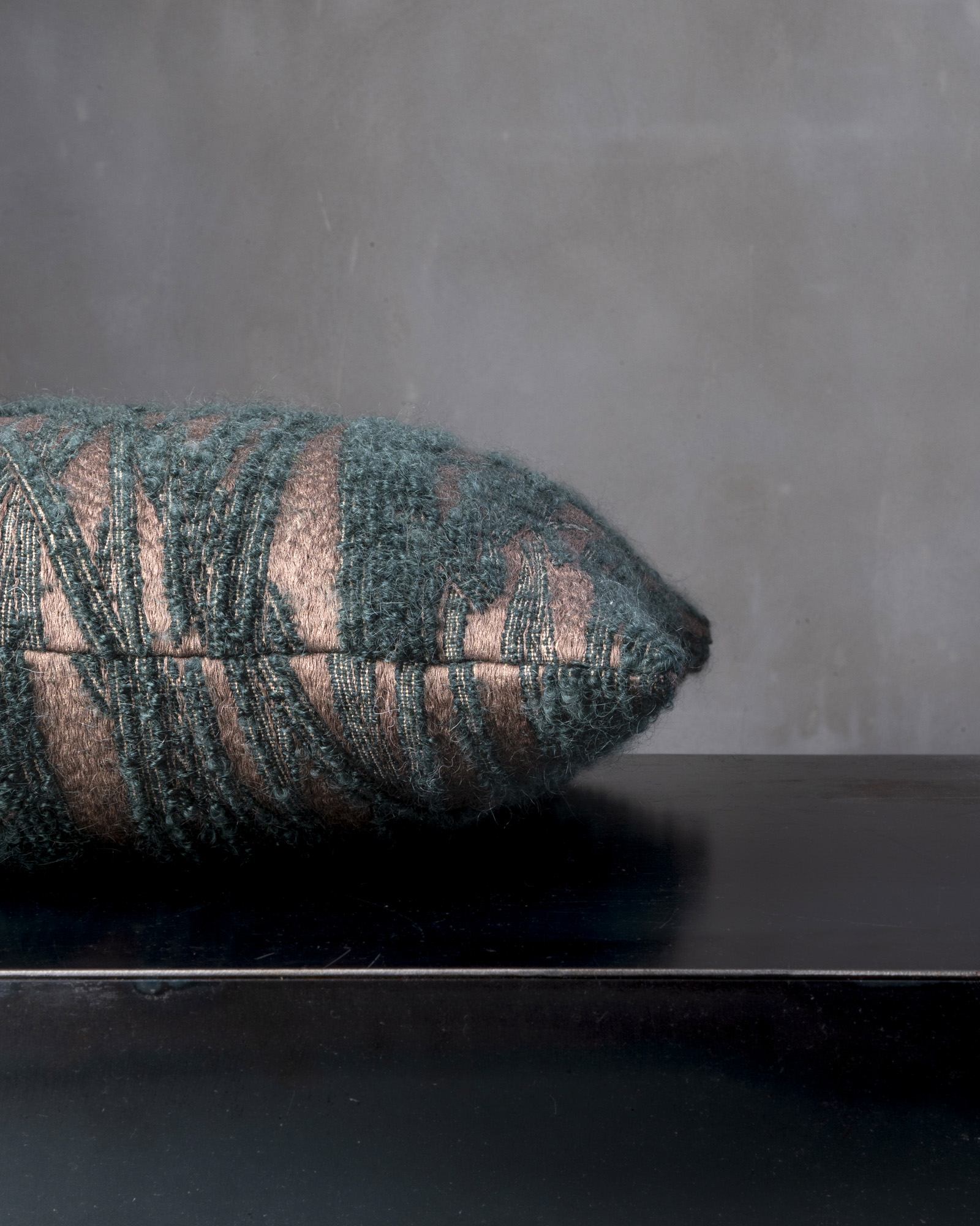 Decorative cushion in mohair. The soft hand envelops the material, conveying an intimate and composed sensation, where every detail finds its own balance. A silent echo of lived-in interiors, where time flows slowly between fabrics and light.