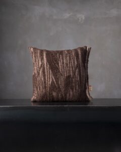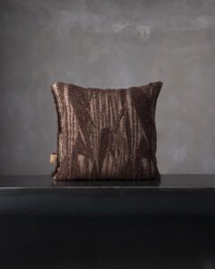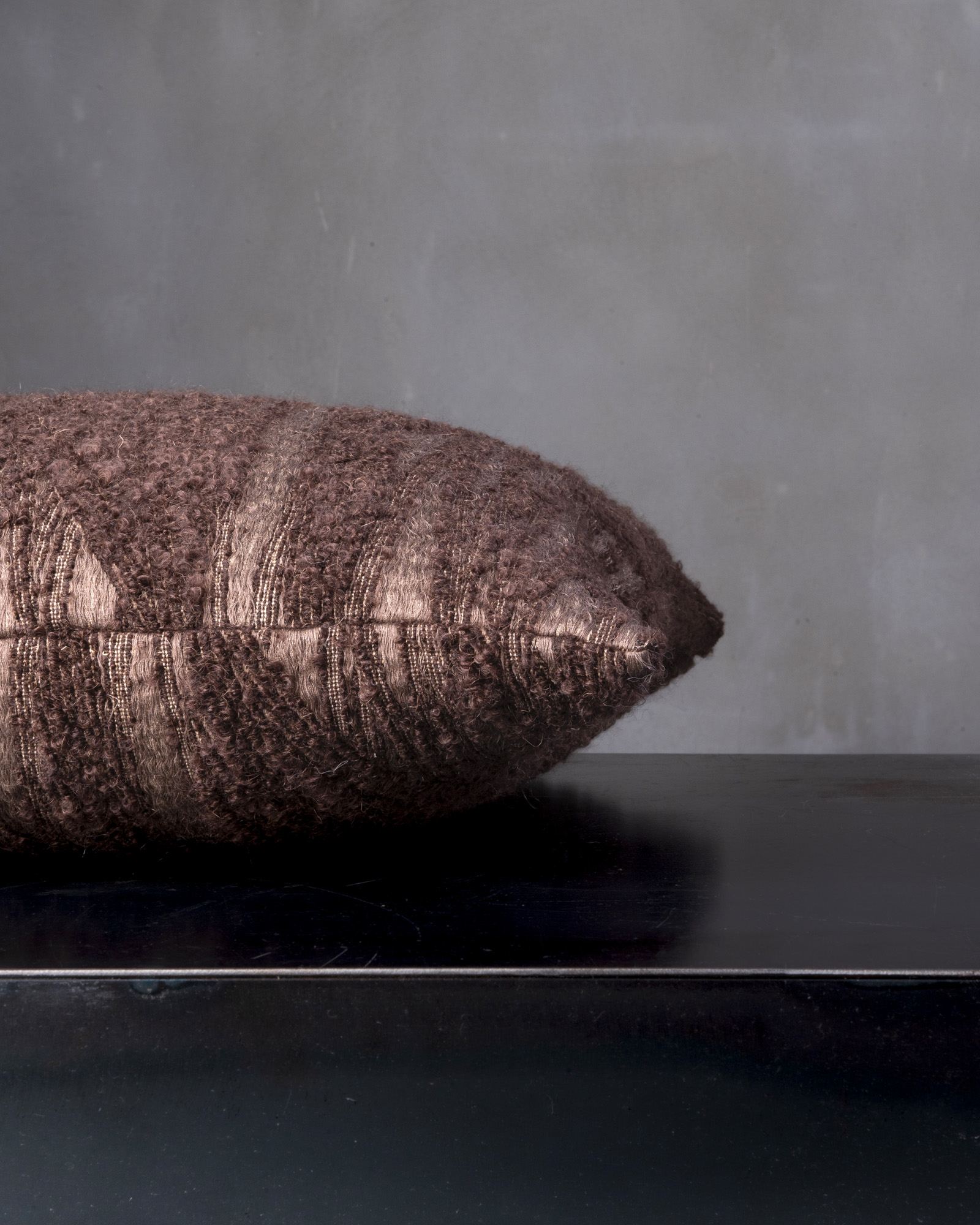 Decorative cushion in mohair. The soft hand envelops the material, conveying an intimate and composed sensation, where every detail finds its own balance. A silent echo of lived-in interiors, where time flows slowly between fabrics and light.