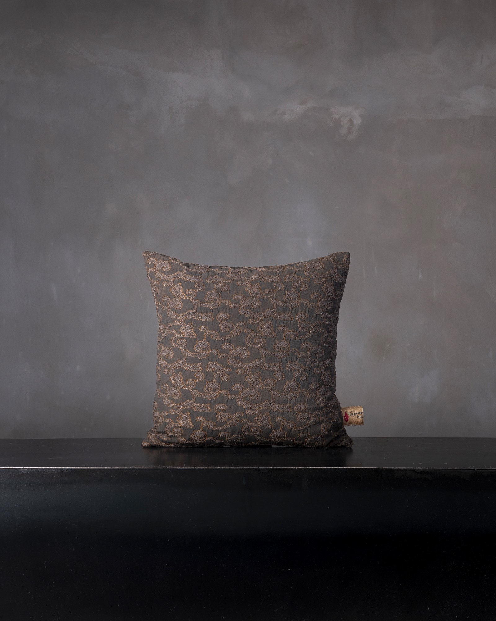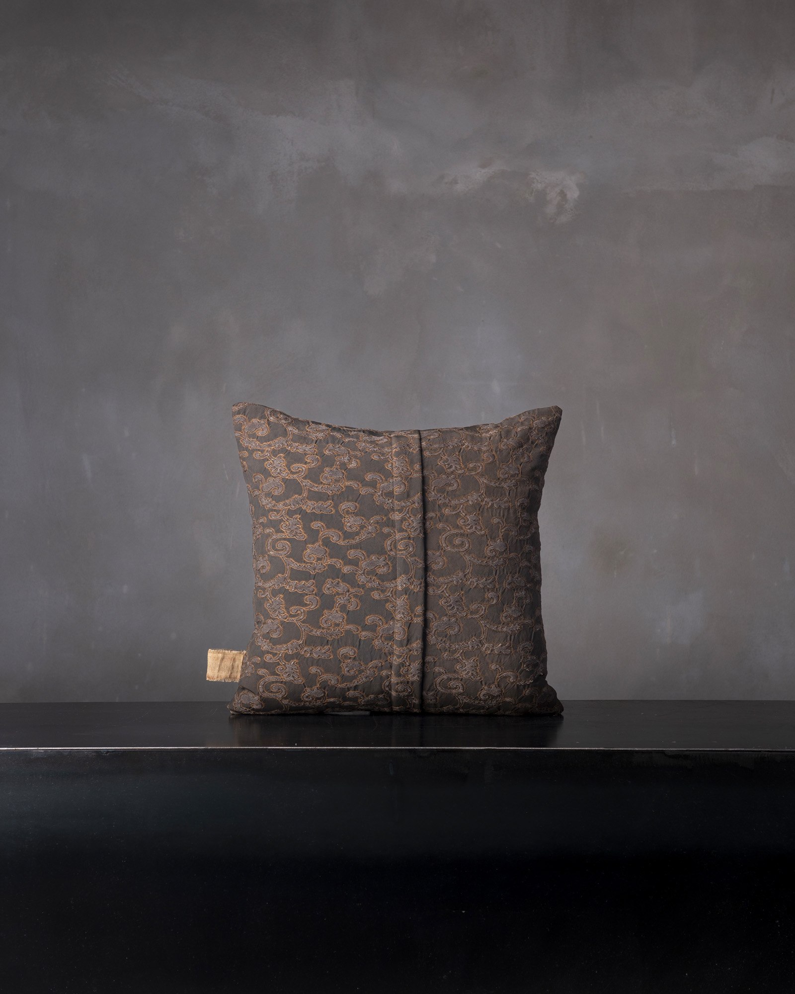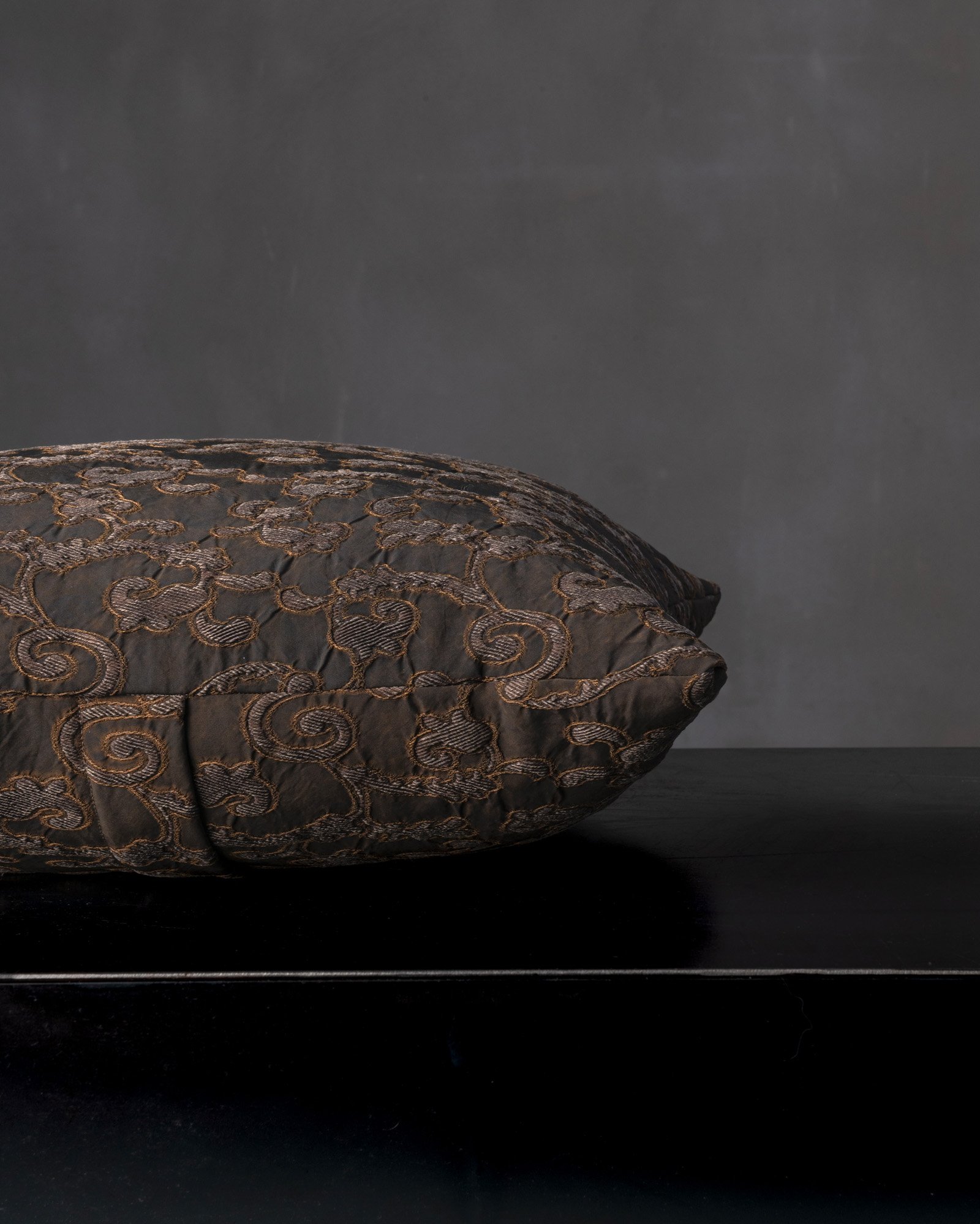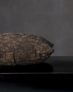 Decorative cushion in viscose. The jacquard pattern spreads across the surface with delicate reliefs, building a vibrant and deep material. A silent weave takes shape, like a landscape that slowly emerges between light and shadow.