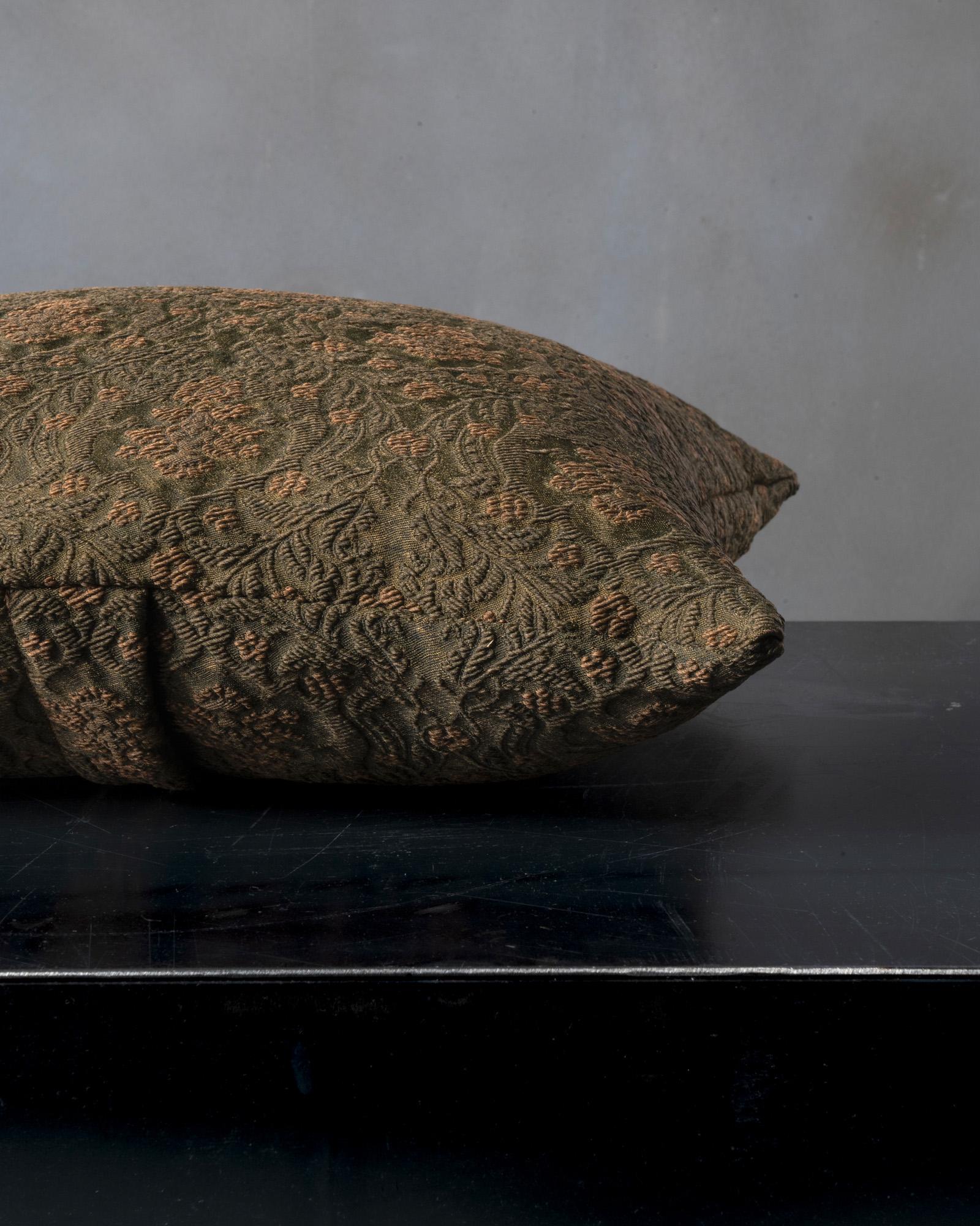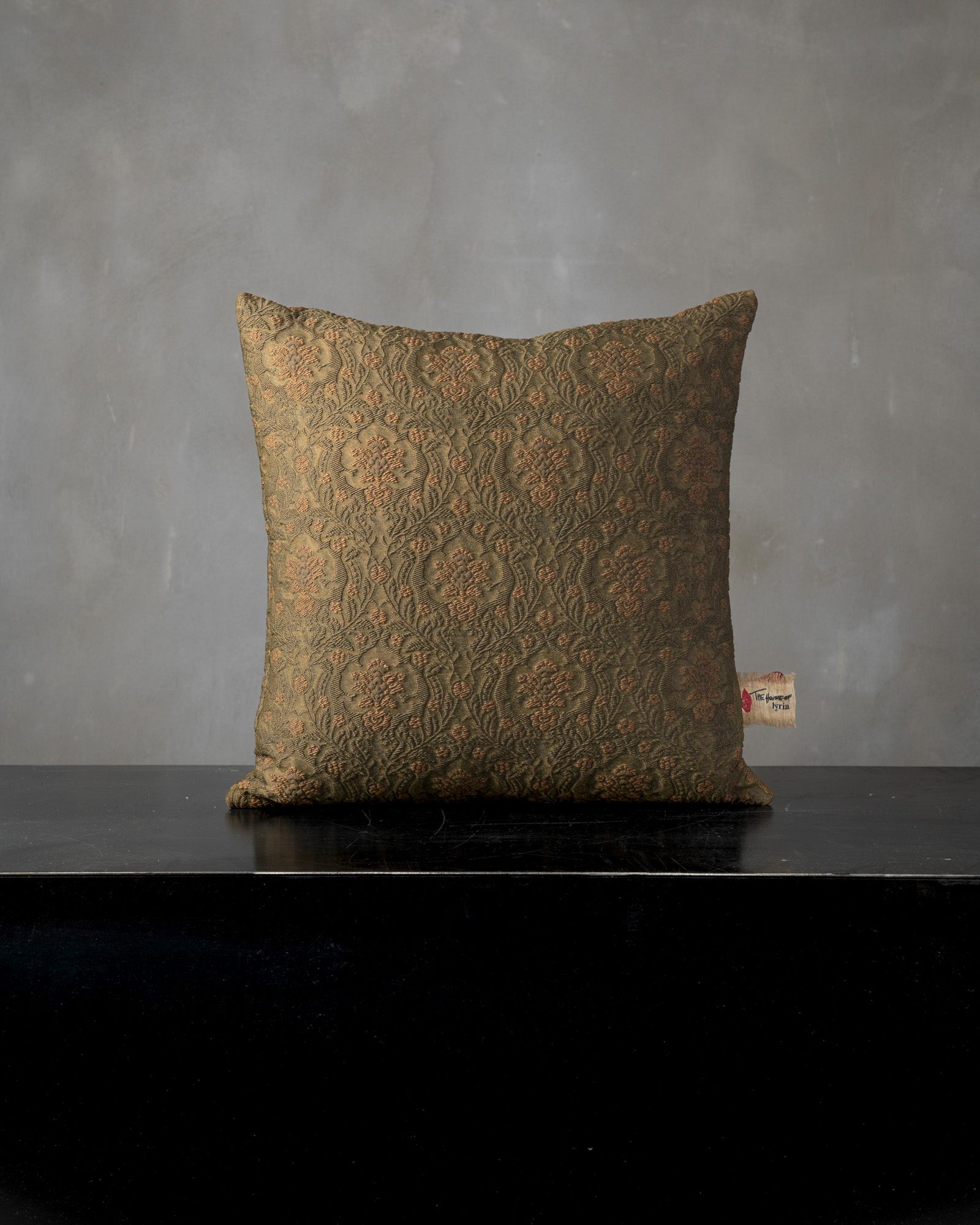 Decorative cushion in viscose. The surface comes alive with movement and reflections, building a vibrant material that evokes classical atmospheres. A light rhythm moves through the fabric, like waves chasing one another in a timeless light.