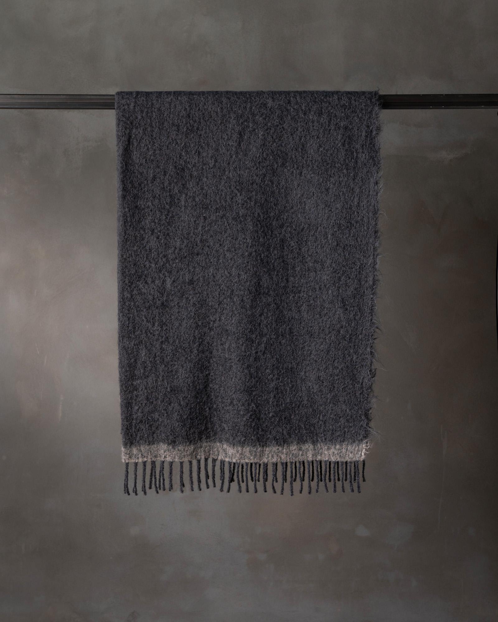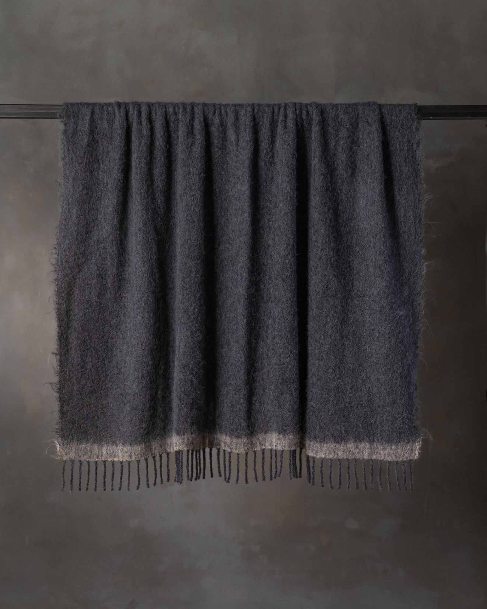 Throw in alpaca. The surface presents itself as essential and continuous, allowing the enveloping softness of the fibre to emerge in all its purity. A gentle warmth diffuses through the material, like a silent embrace that envelops the space with natural elegance.