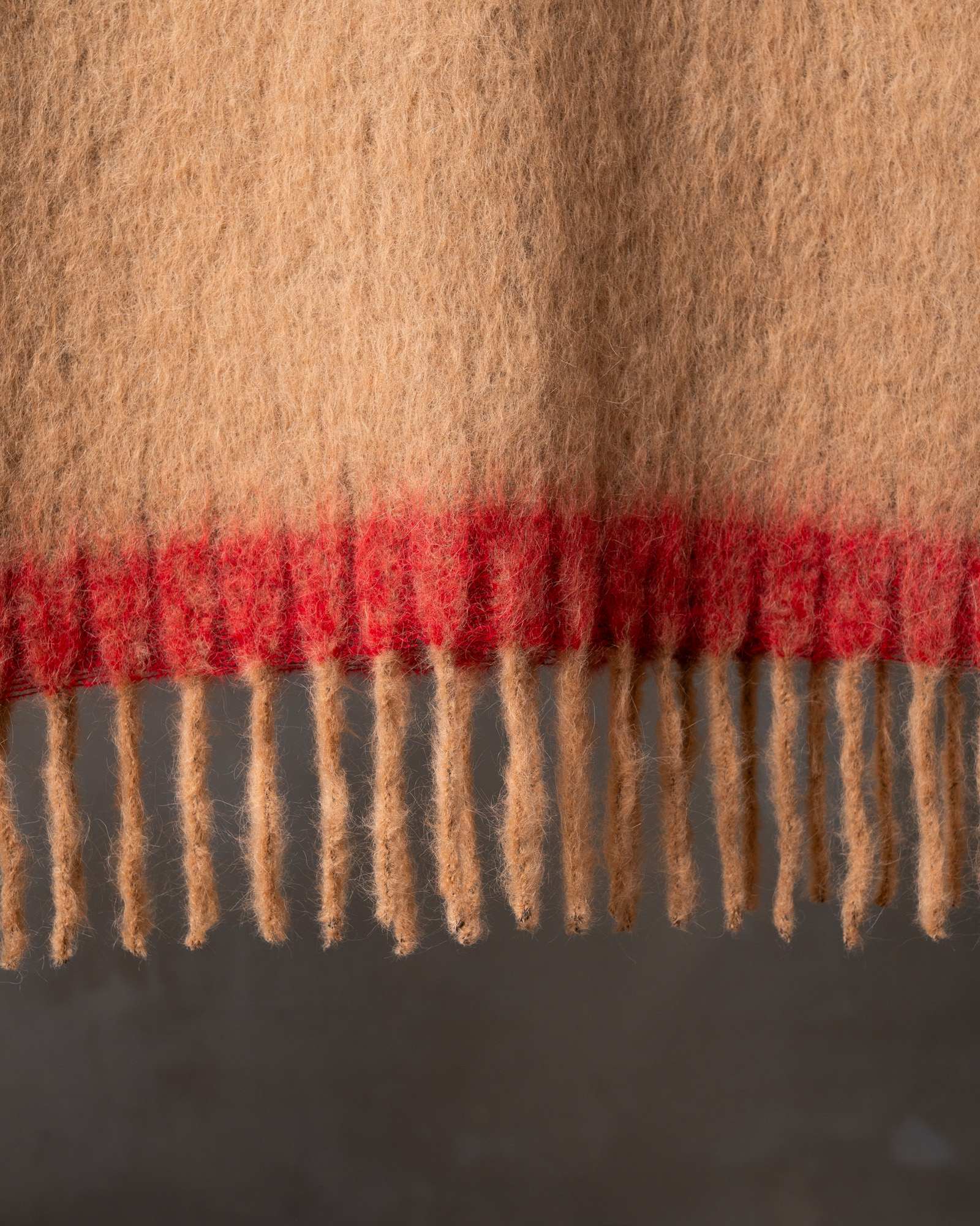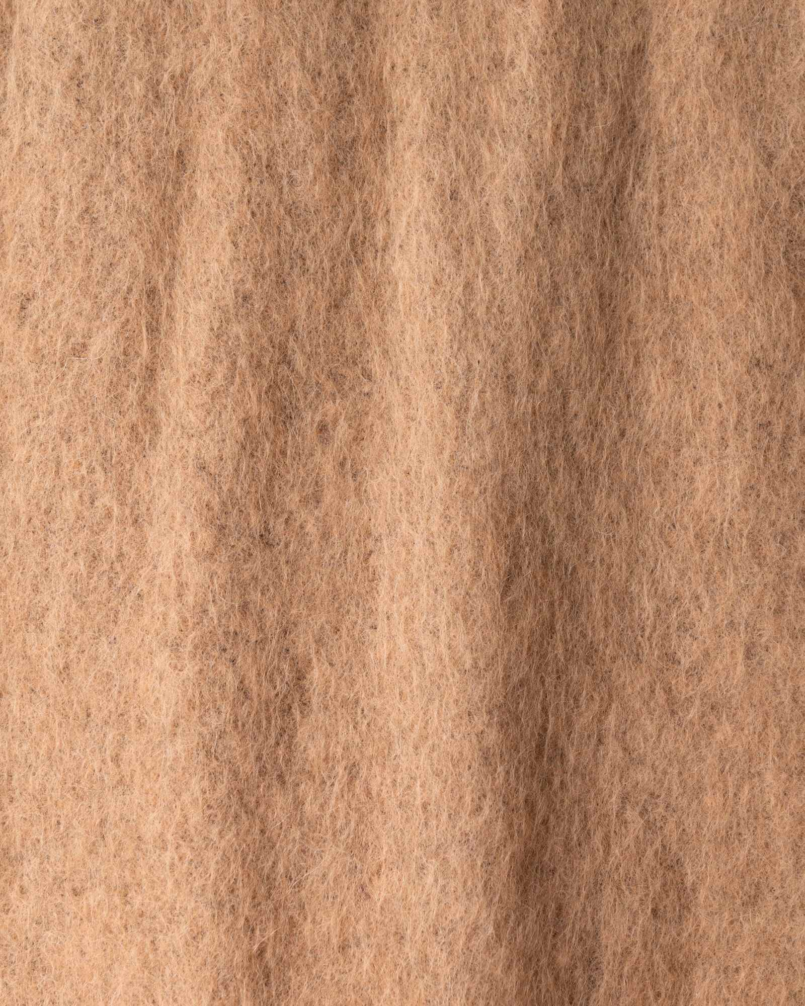 Throw in alpaca. The surface presents itself as essential and continuous, allowing the enveloping softness of the fibre to emerge in all its purity. A gentle warmth diffuses through the material, like a silent embrace that envelops the space with natural elegance.