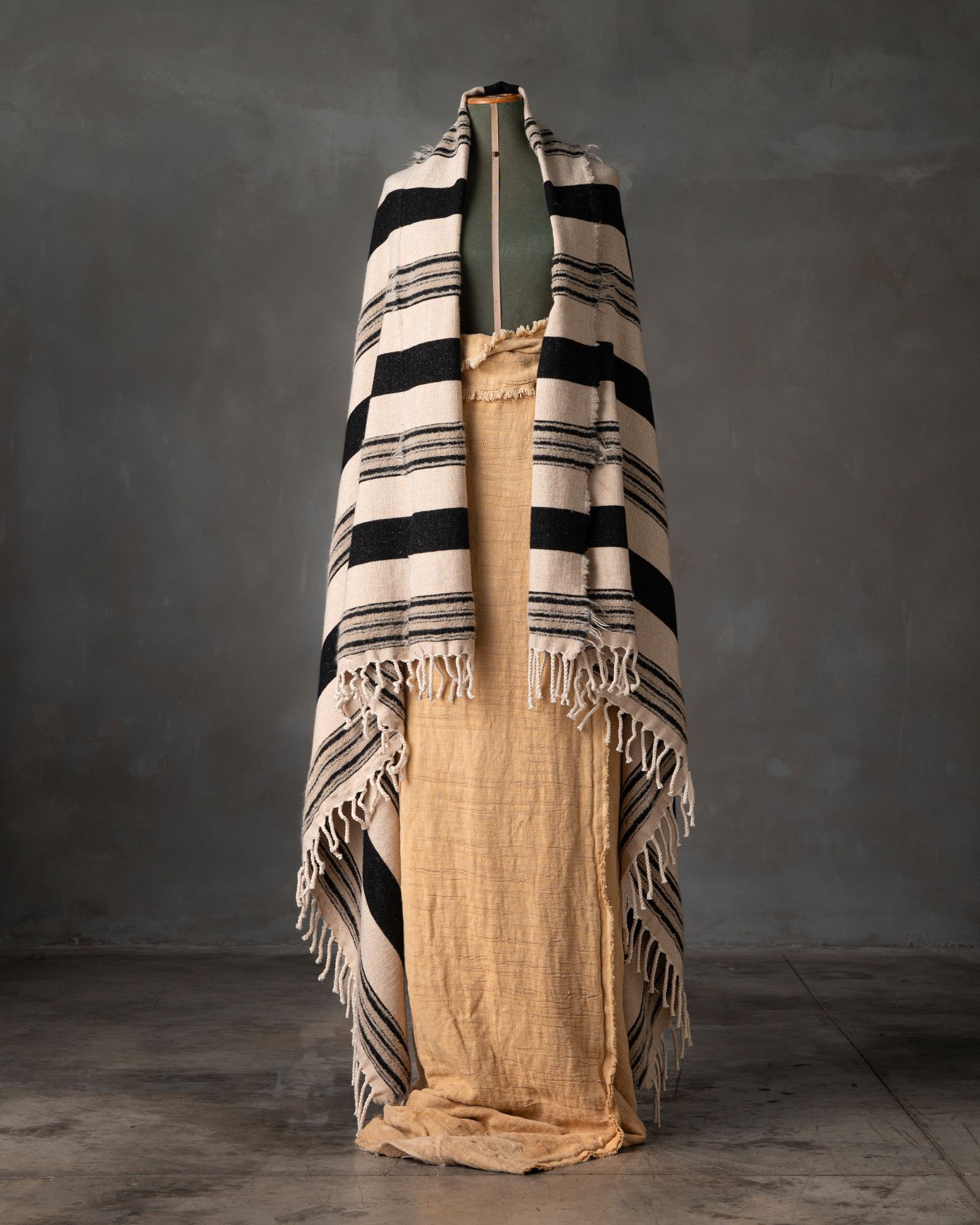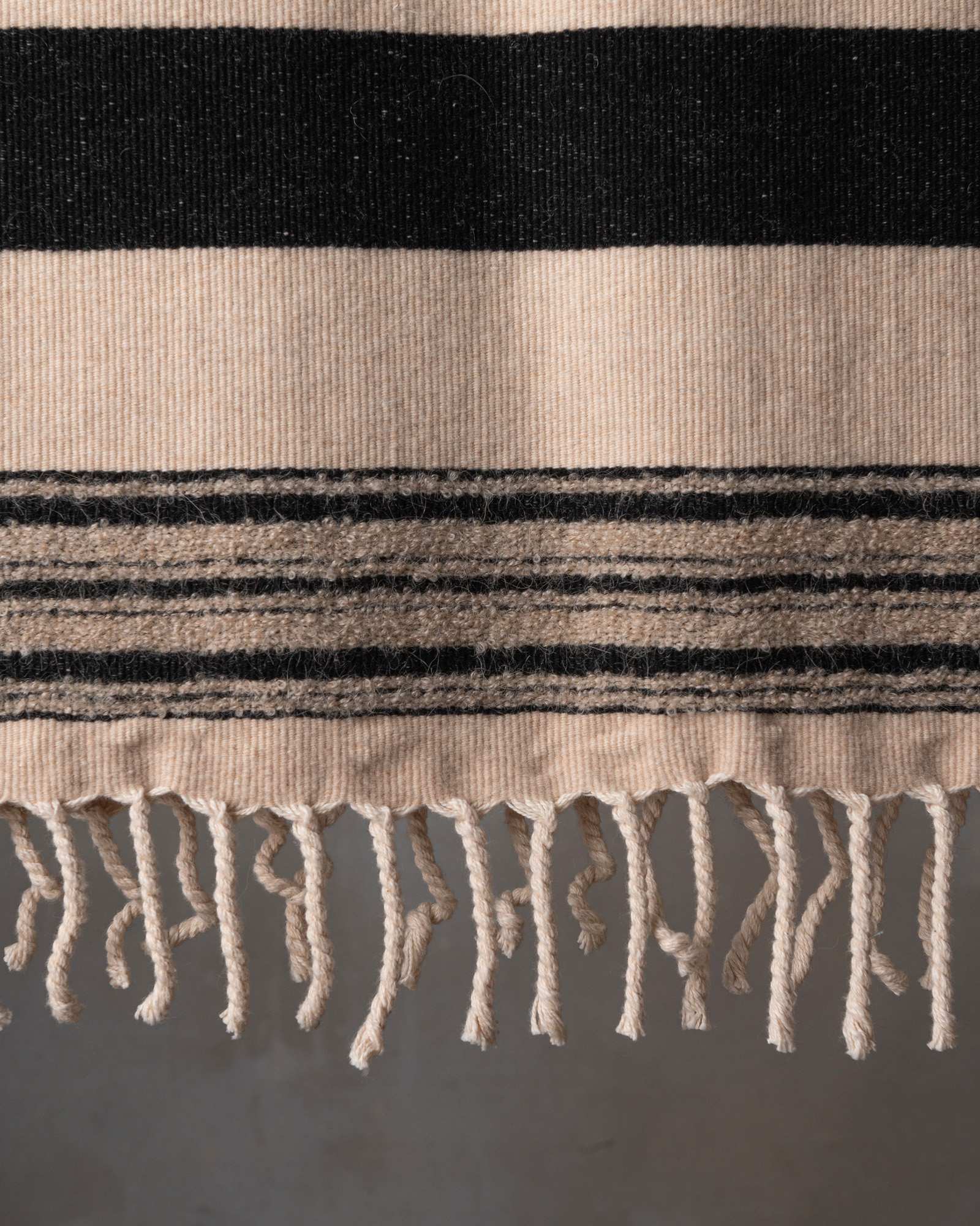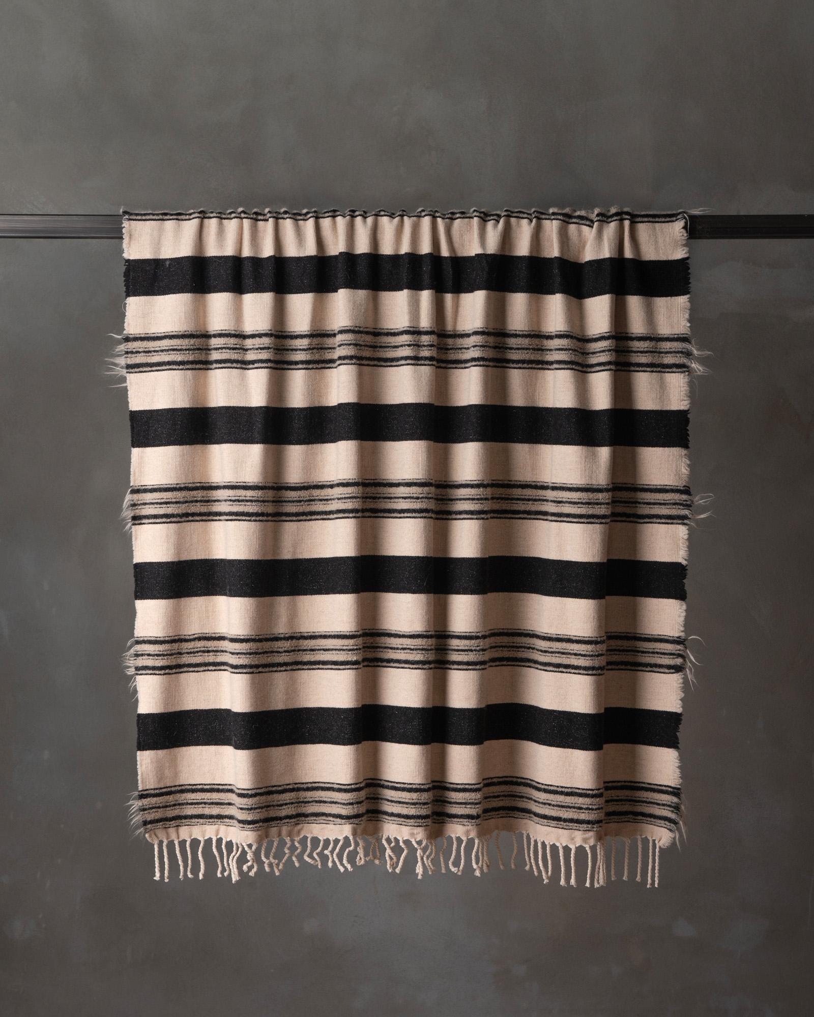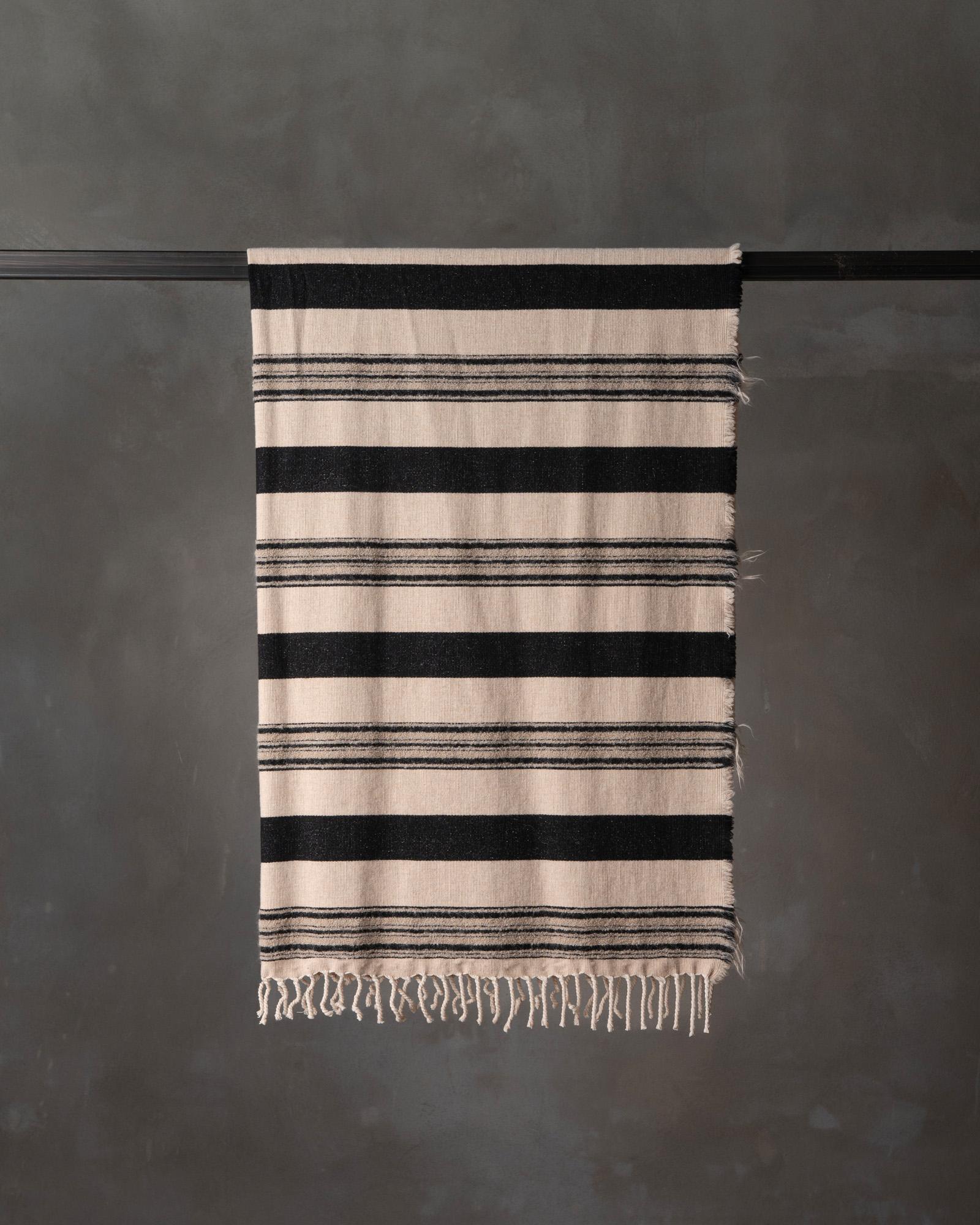 Throw in cotton and wool. The striped motif spreads across the surface with measured rhythm, building a balance between structure and material softness. Continuous lines move through the fabric, like a regular flow that envelops the space with a warm and composed presence.