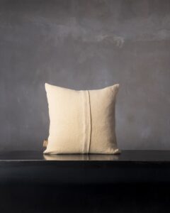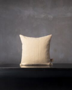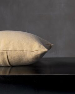 Decorative cushion in linen. The authentic texture of the fibre expresses an essential beauty, made of irregularities and living matter that allows itself to be observed in its purity. A discreet and sincere presence, like a fragment of nature inhabiting the space with silent harmony.