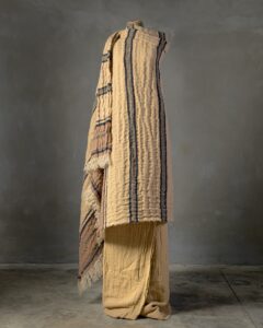Throw in jute and wool. The striped motif develops with decisive rhythm across the material surface, where the fibre alternates different consistencies in a dynamic and contemporary balance. The weave moves like an organic landscape, in which every variation tells of the strength and delicacy of the material.