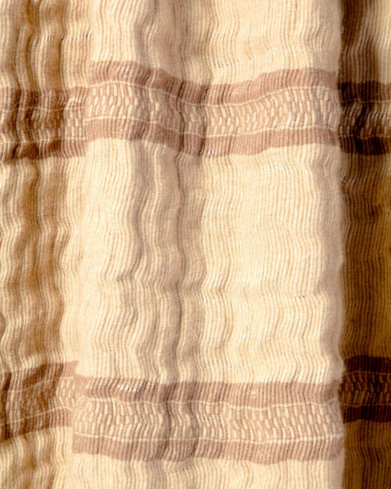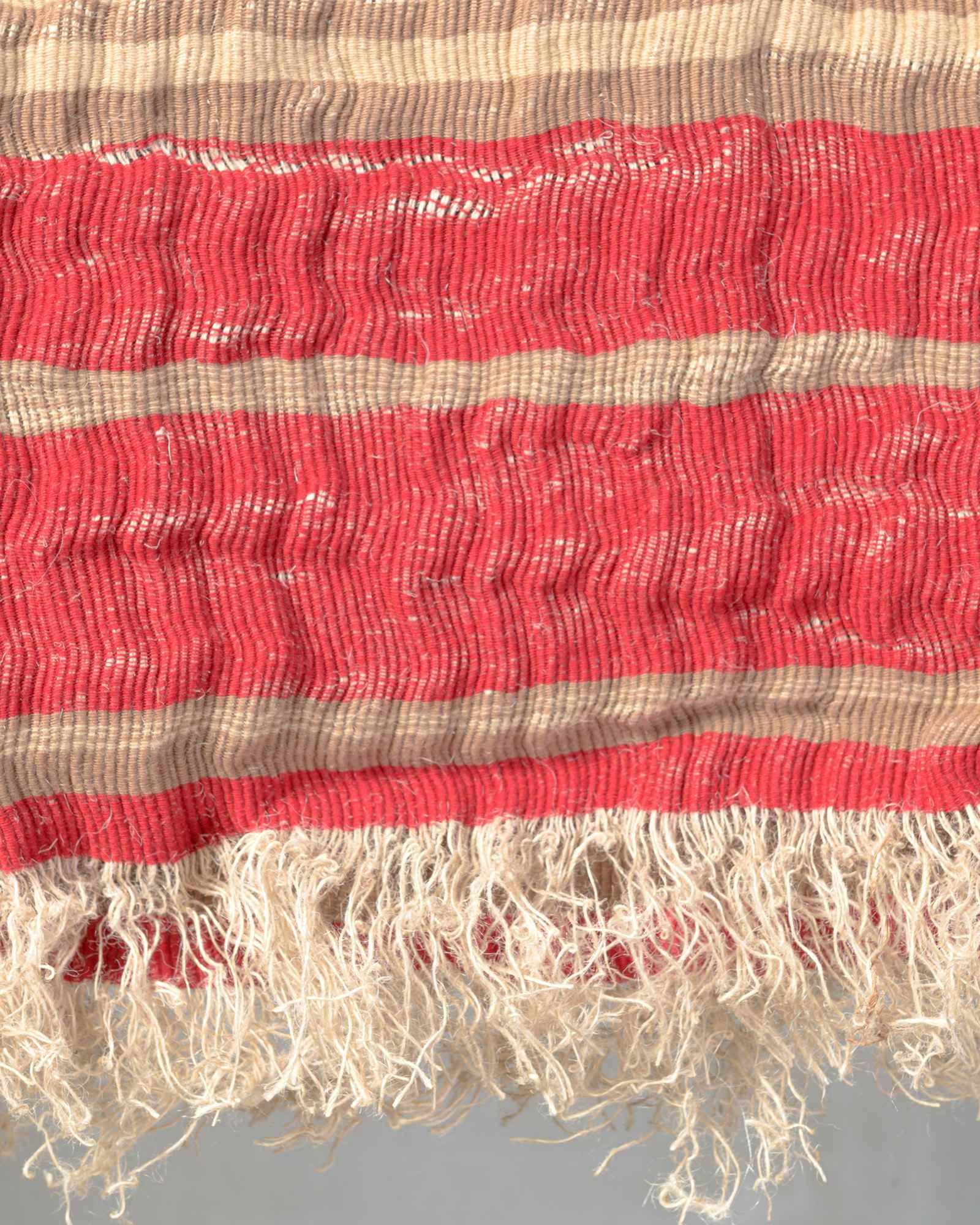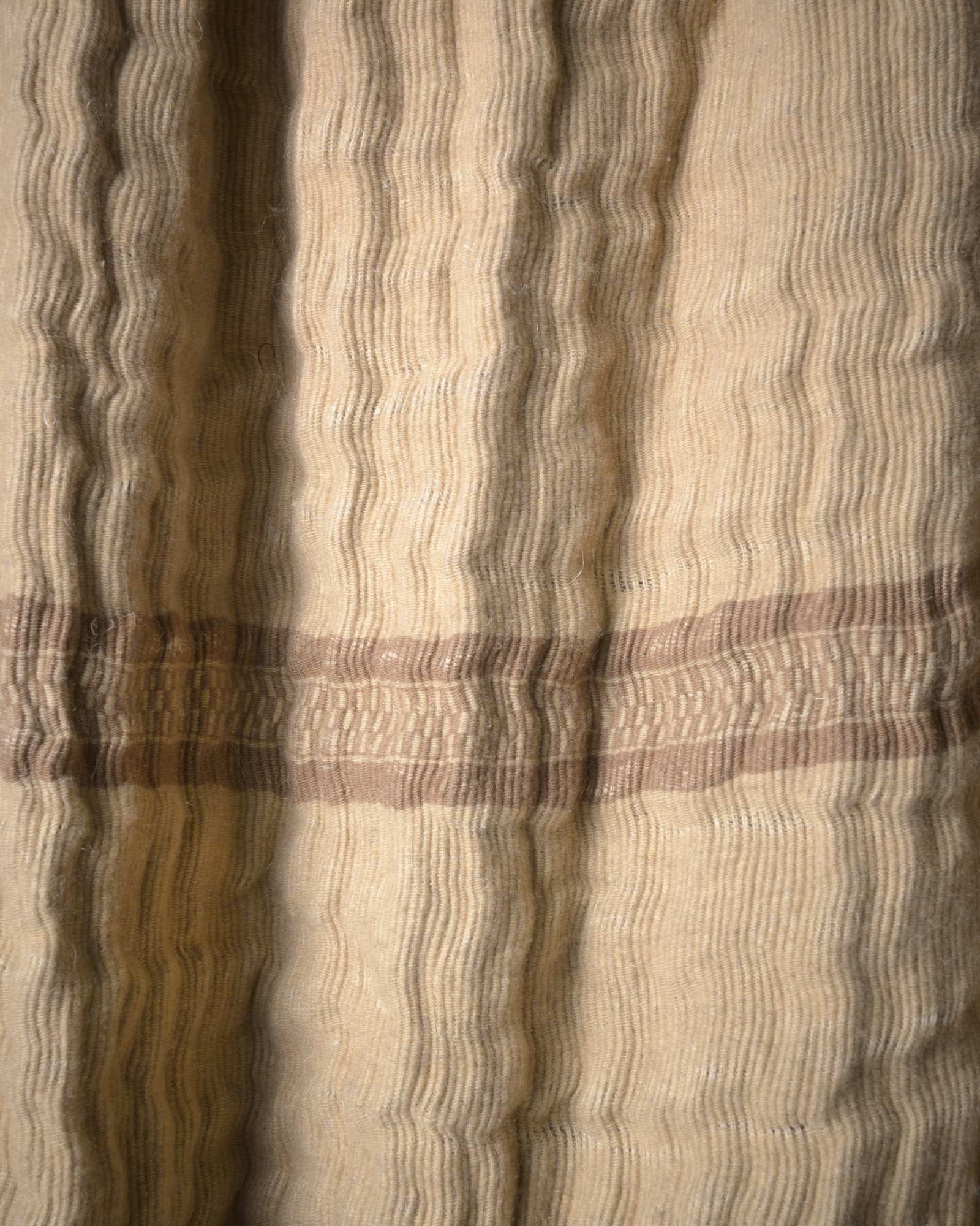 Throw in jute and wool. The striped motif develops with decisive rhythm across the material surface, where the fibre alternates different consistencies in a dynamic and contemporary balance. The weave moves like an organic landscape, in which every variation tells of the strength and delicacy of the material.