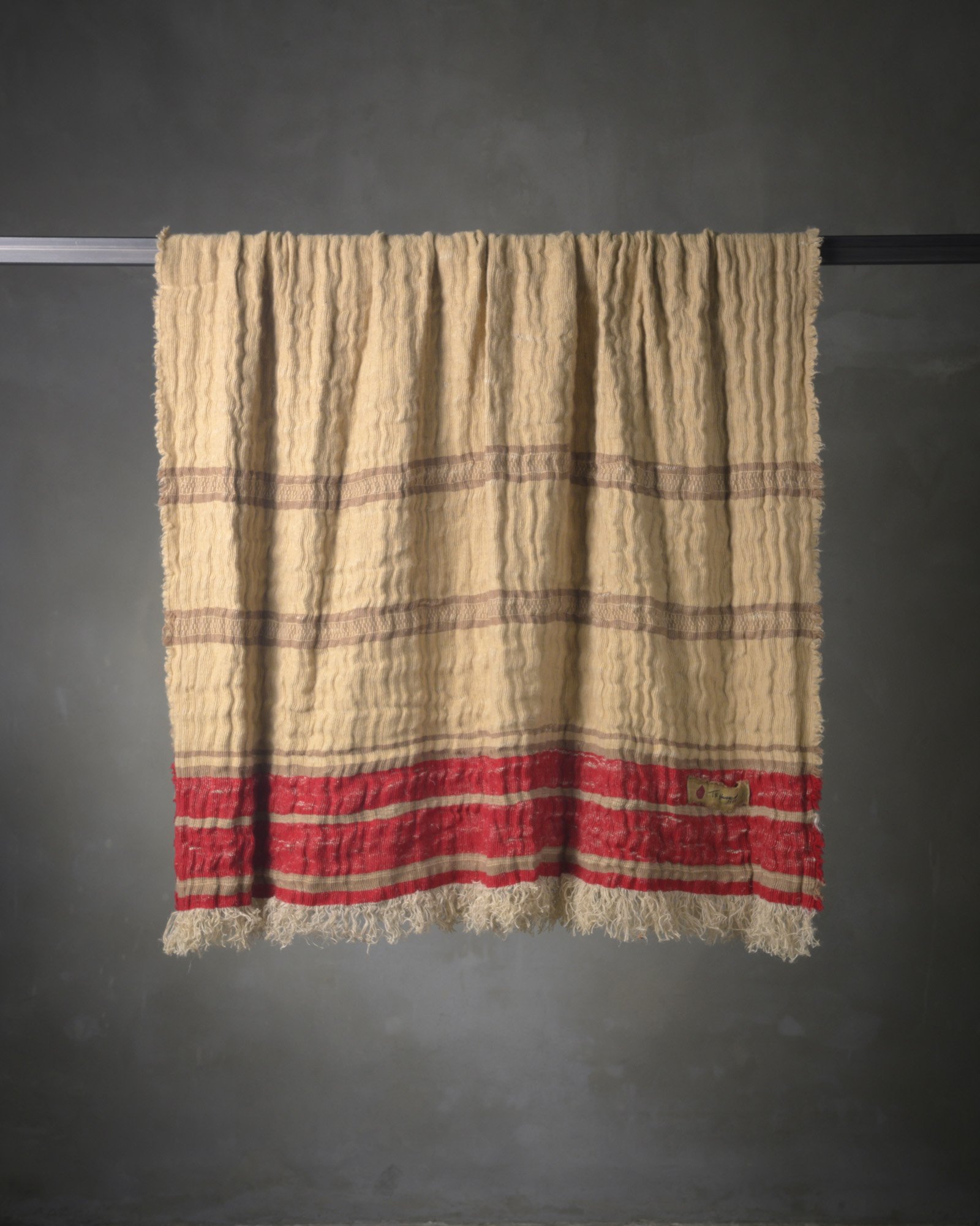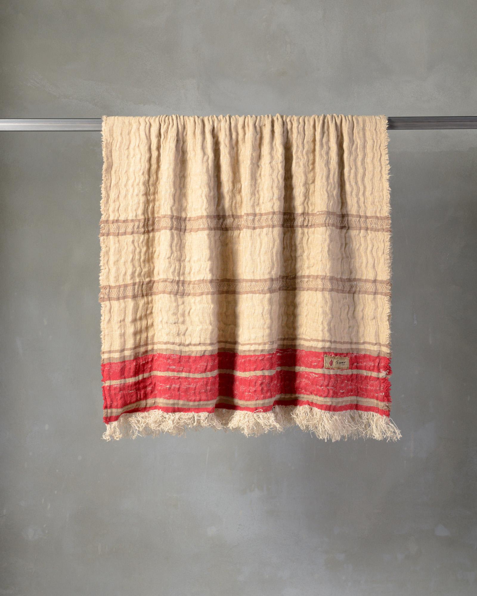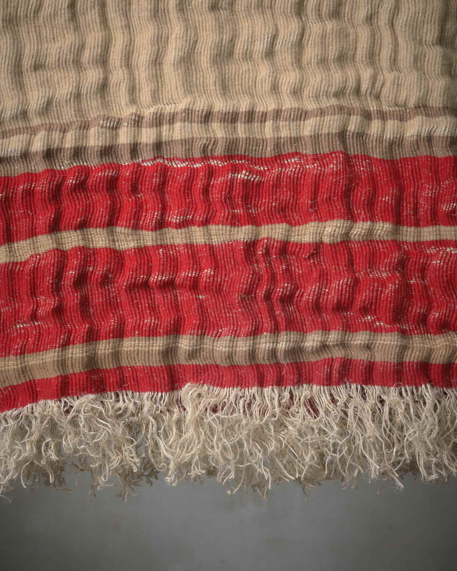Throw in jute and wool. The striped motif develops with decisive rhythm across the material surface, where the fibre alternates different consistencies in a dynamic and contemporary balance. The weave moves like an organic landscape, in which every variation tells of the strength and delicacy of the material.