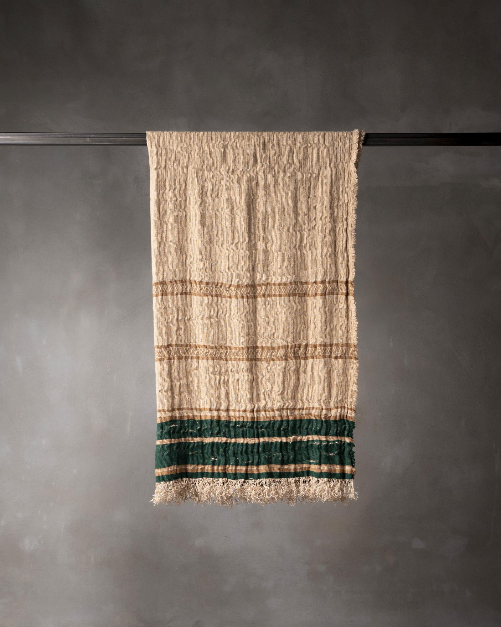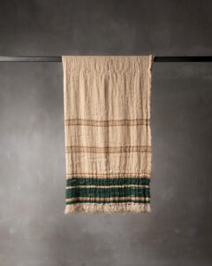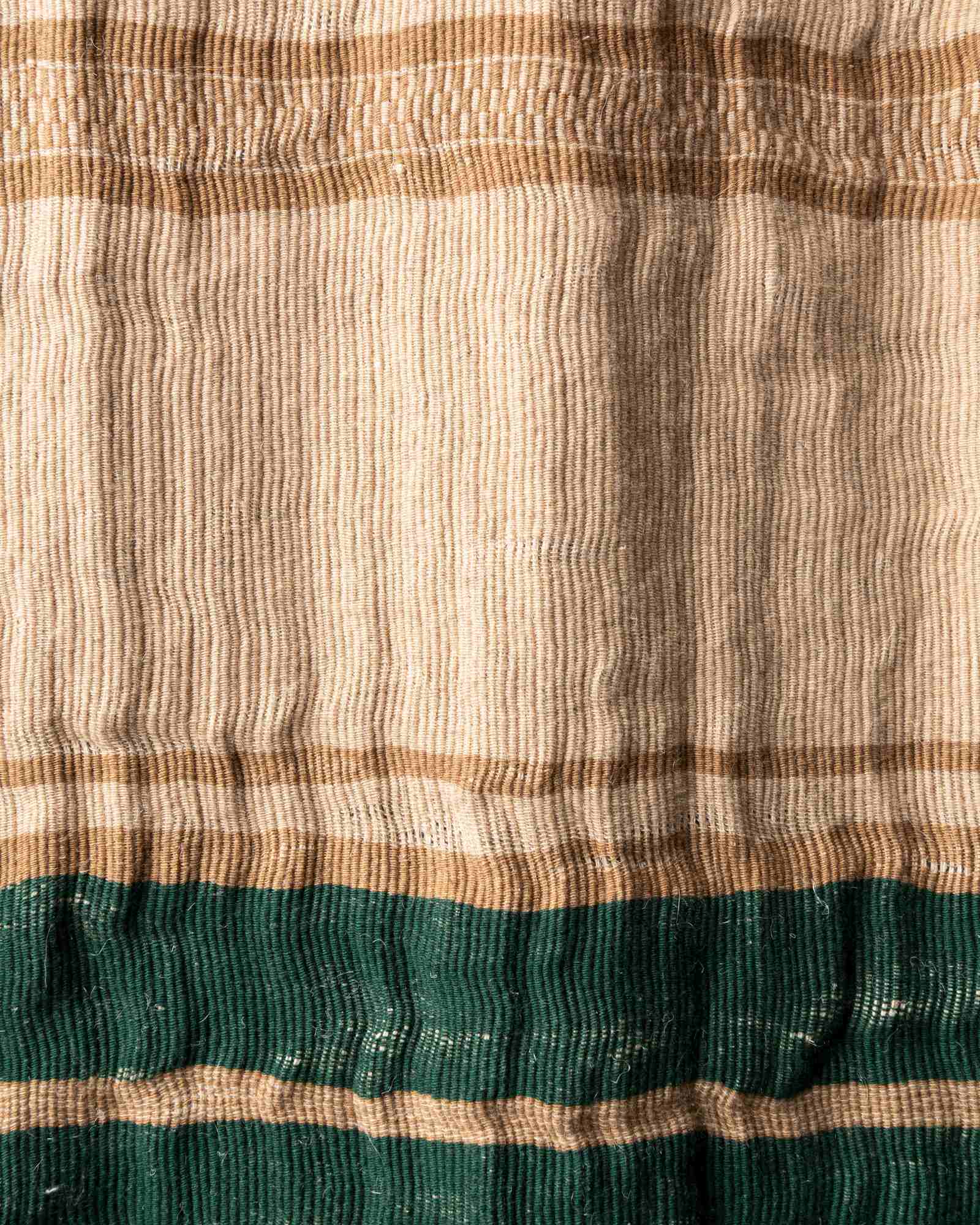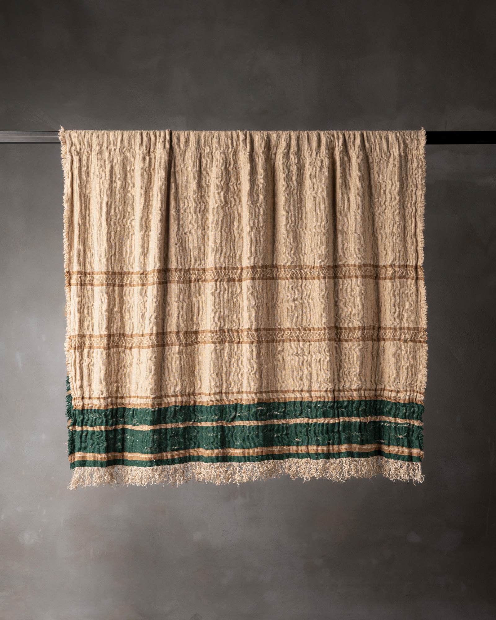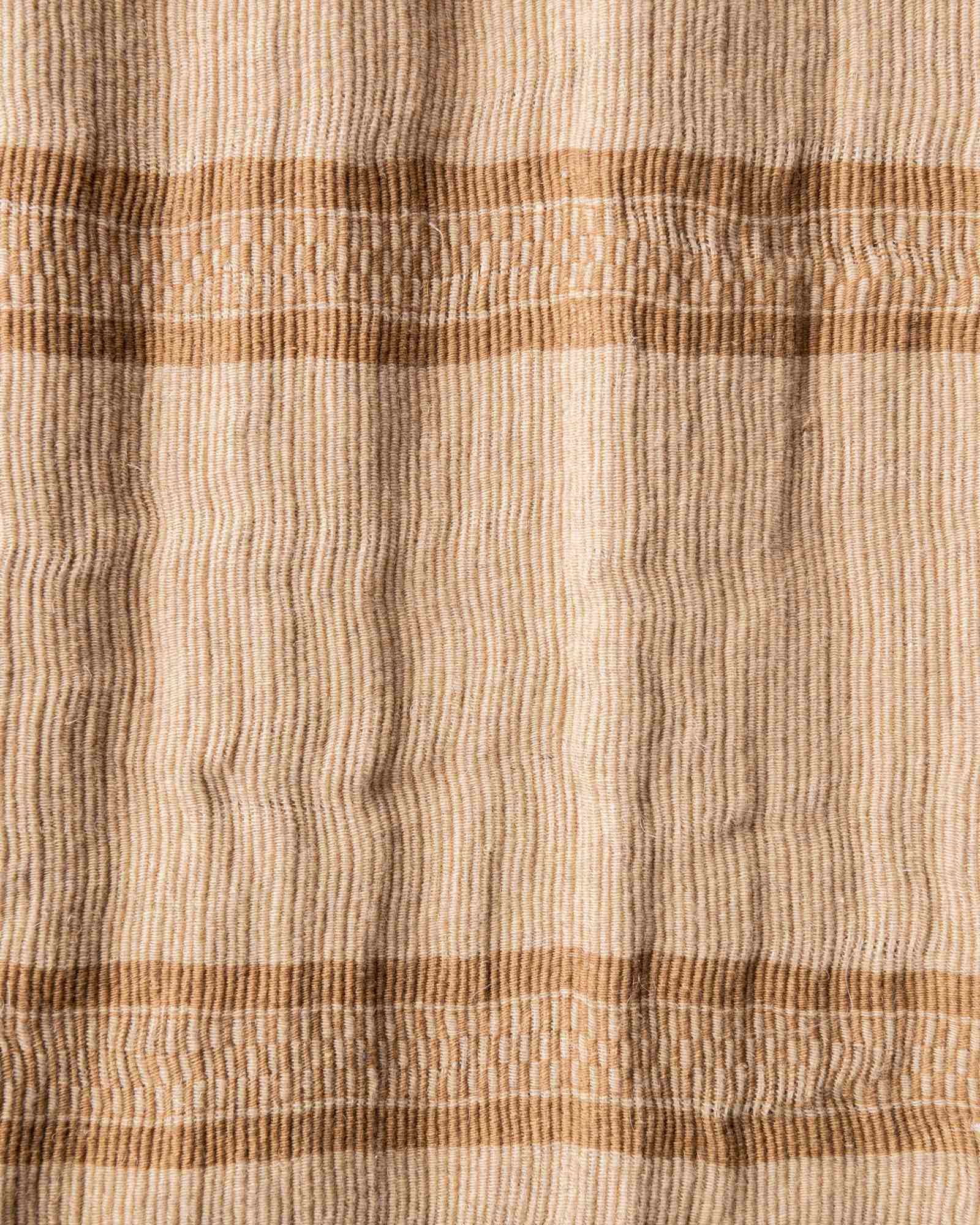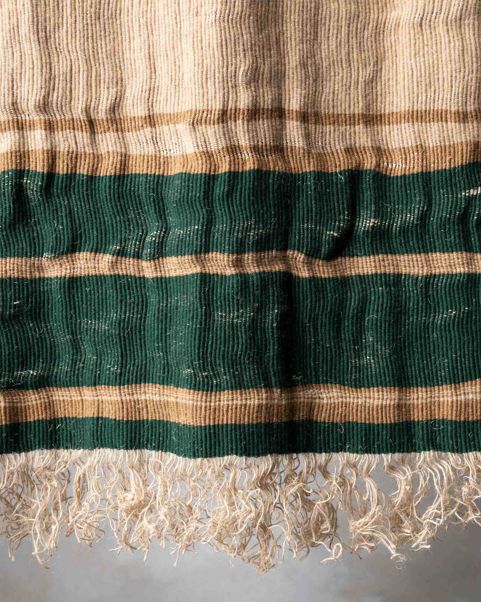 Throw in jute and wool. The striped motif develops with decisive rhythm across the material surface, where the fibre alternates different consistencies in a dynamic and contemporary balance. The weave moves like an organic landscape, in which every variation tells of the strength and delicacy of the material.