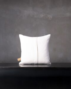 Decorative cushion in linen. The surface expresses the purity of the fibre through an authentic and vibrant material, where every irregularity becomes a distinctive mark. An essential presence that recalls the simplicity of nature, like a light breath moving through the space.