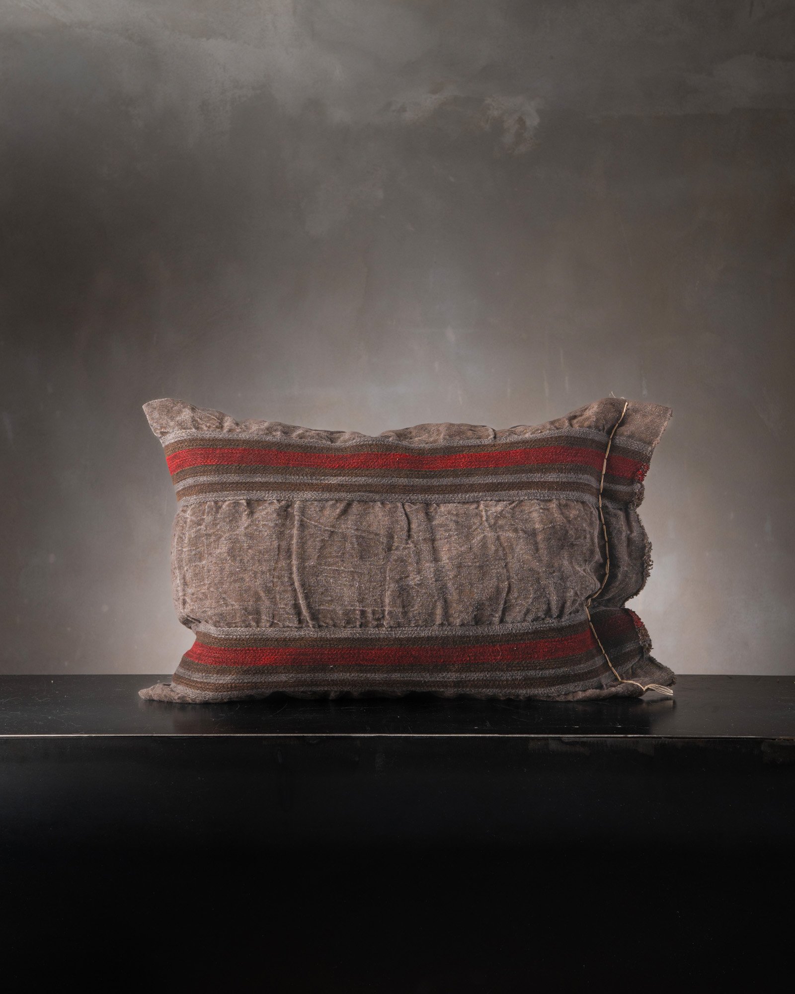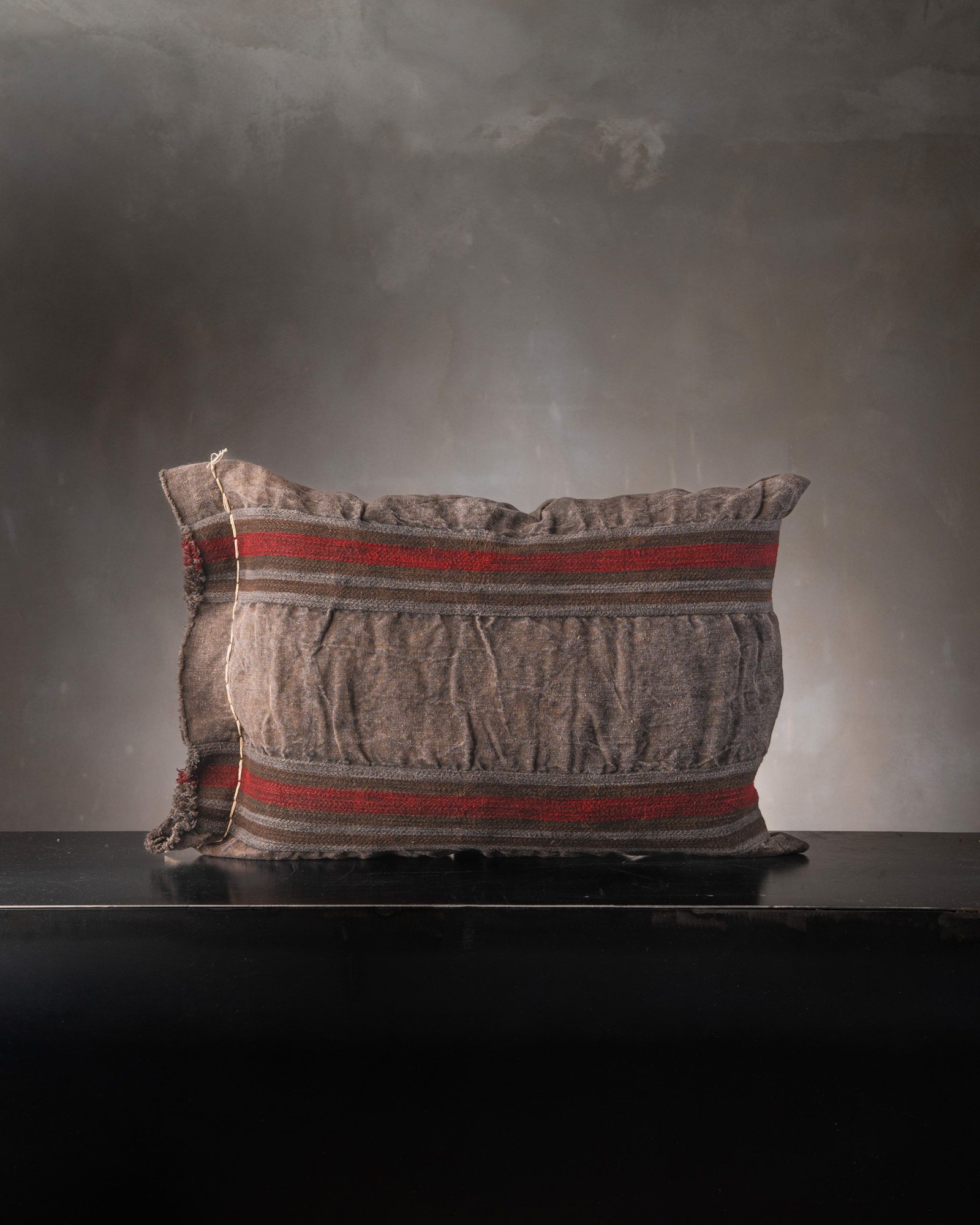 Decorative cushion in cotton and linen. The jacquard pattern alternates relief and lightness, building a surface where the material moves with balance and naturalness. A subtle rhythm moves through the fabric, like a weave that breathes between solids and voids, evoking an authentic and measured beauty.