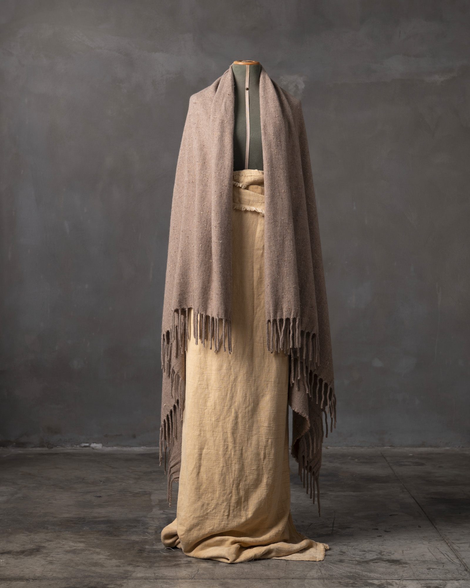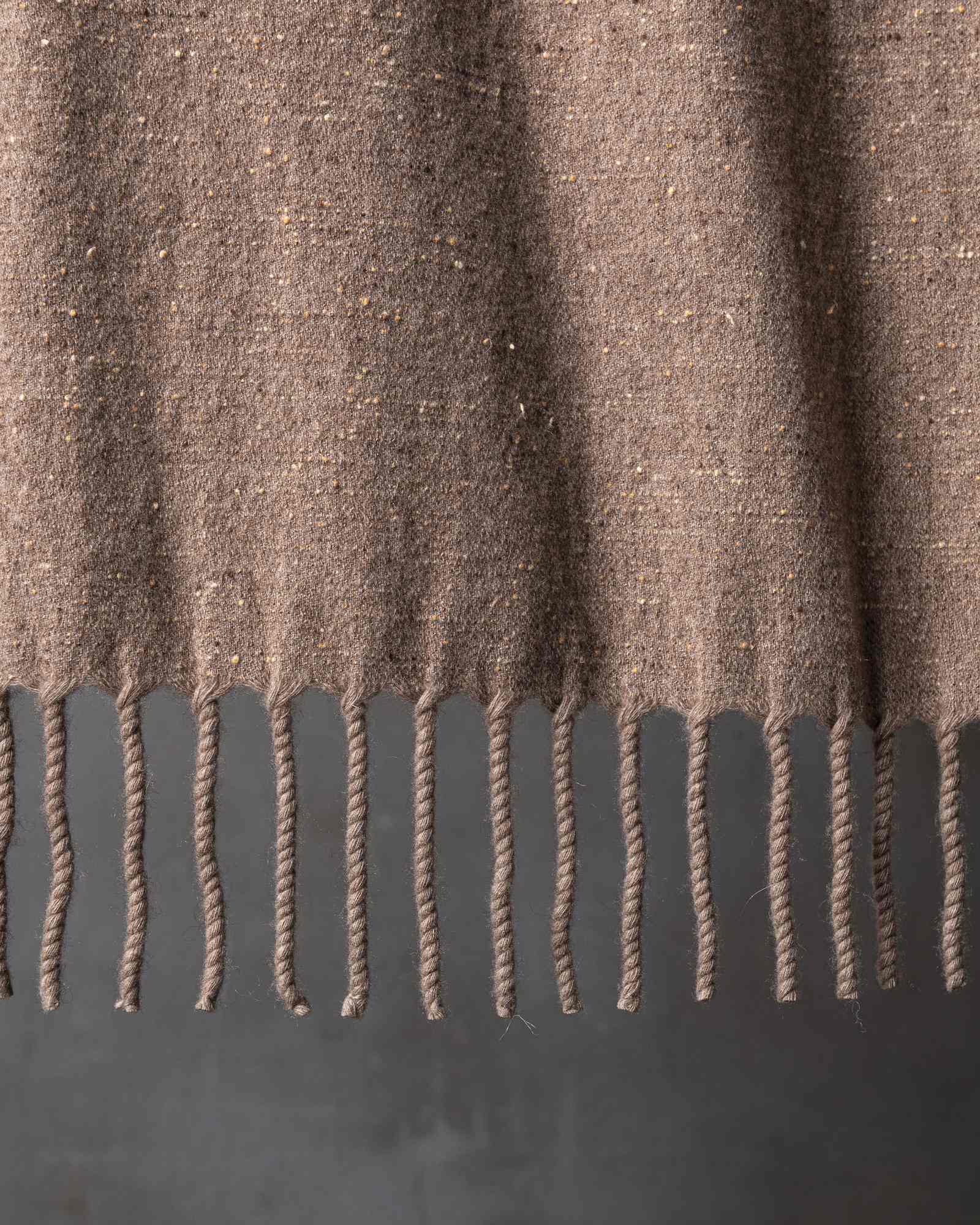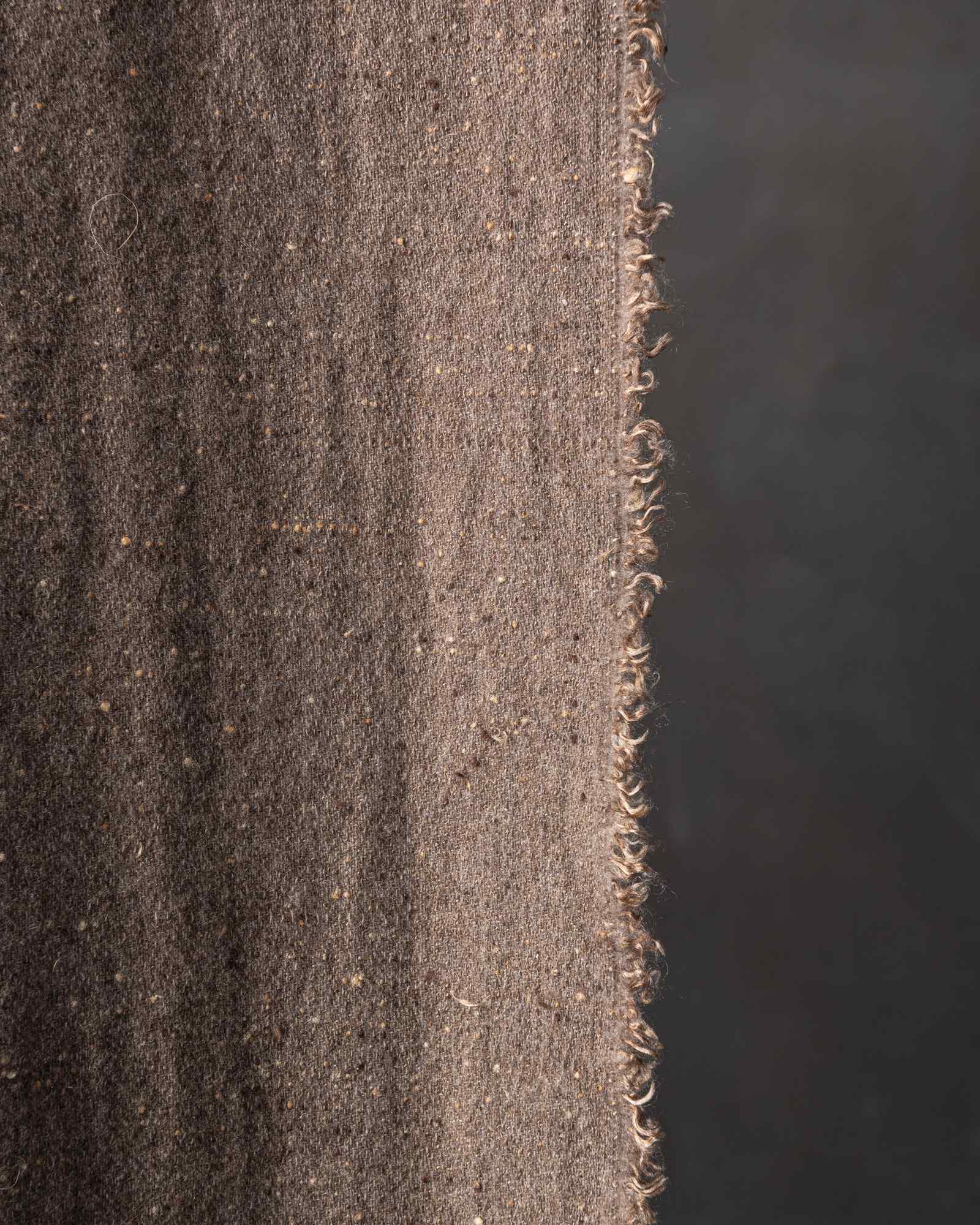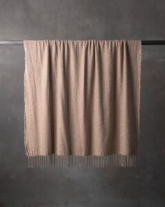 Throw in cashmere. The surface is enriched by a subtle and granular texture, where the softness of the fibre expresses itself with depth and diffuse light. Small variations move through the material, like imperceptible details that make every tactile gesture rich and silently precious.