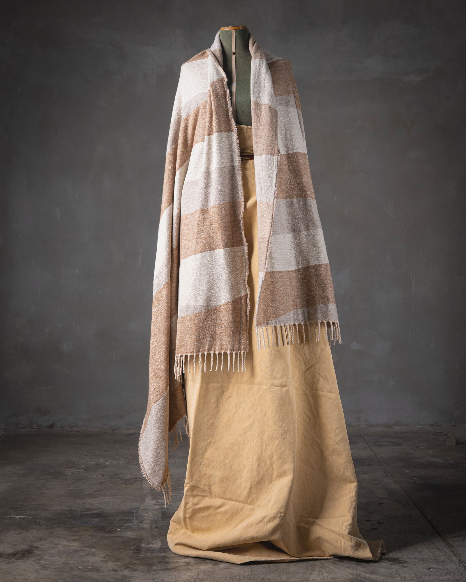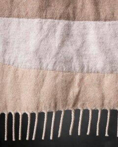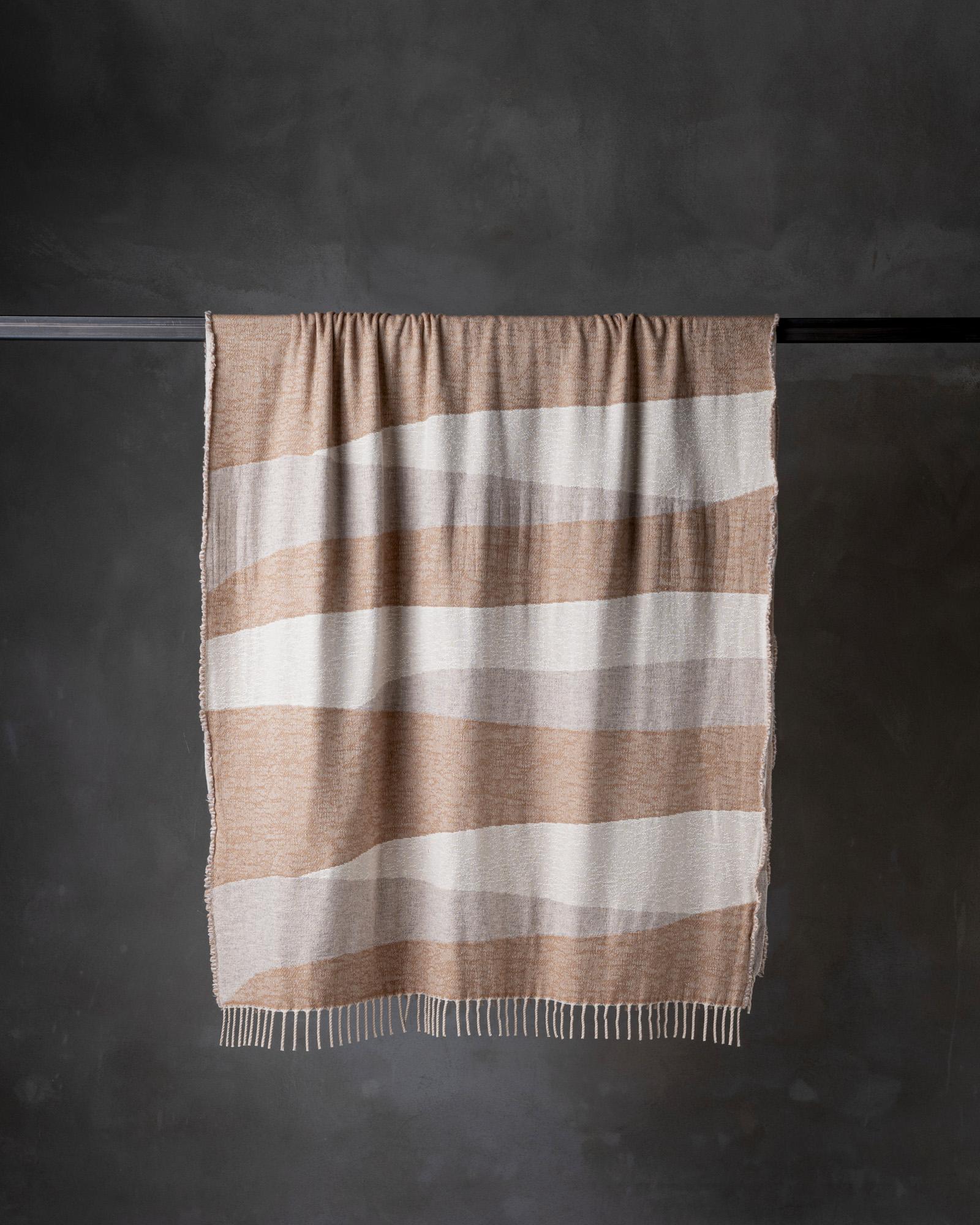 Throw in virgin wool. The jacquard motif develops with structure across the surface, creating a deep weave where the graphic rhythm joins an enveloping material. Essential geometries emerge with discretion, like ordered marks that build a warm and contemporary presence.