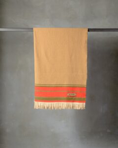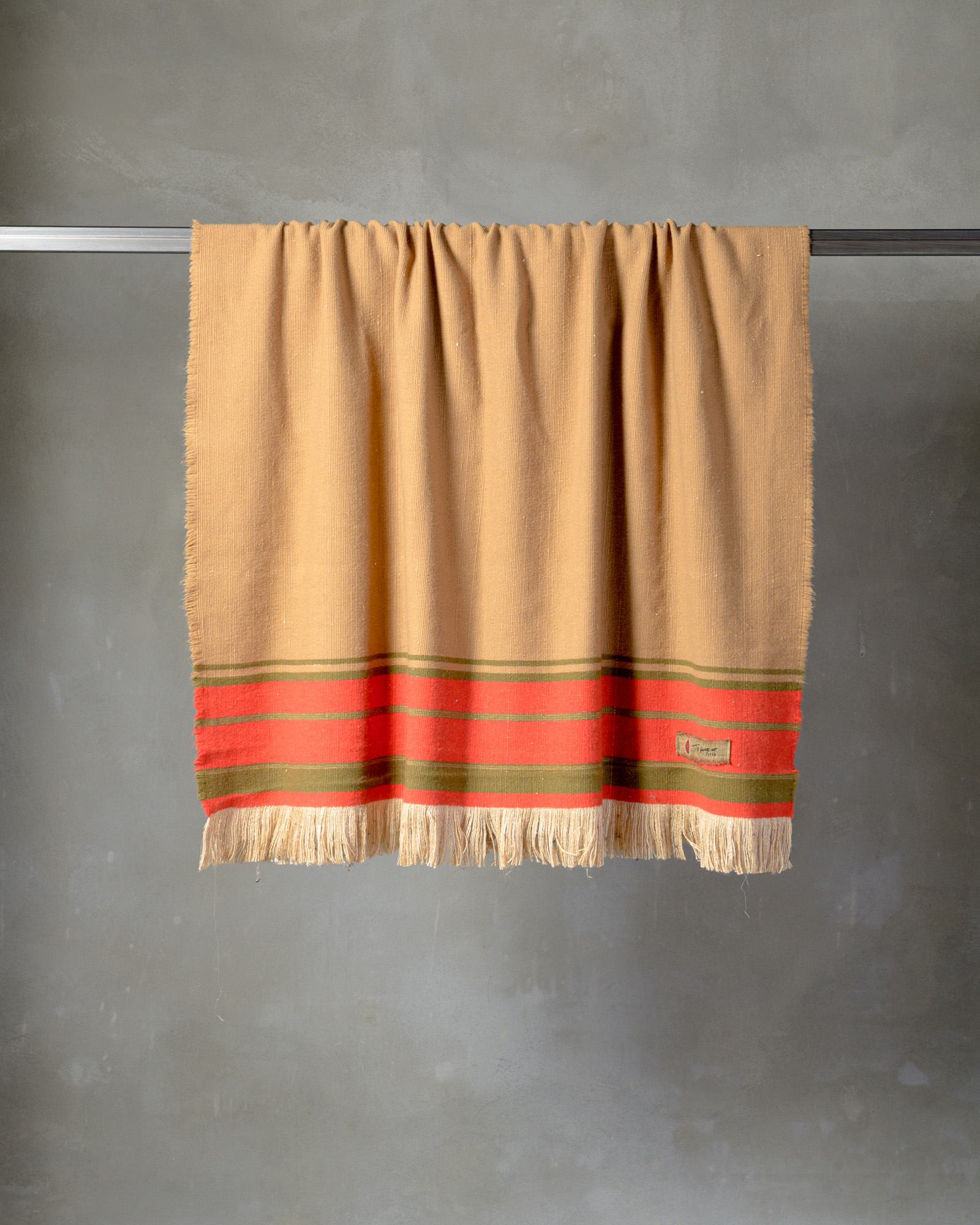 Throw in silk and wool. The motif develops across the surface with a refined rhythm, where the material alternates softness and lightness in a harmonious balance. Fluid lines move through the fabric like a continuous dialogue, creating a subtle vibration that unites elegance and depth.