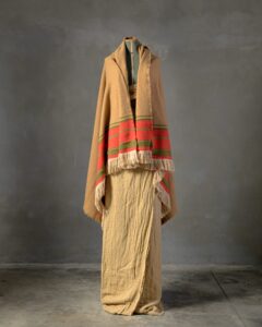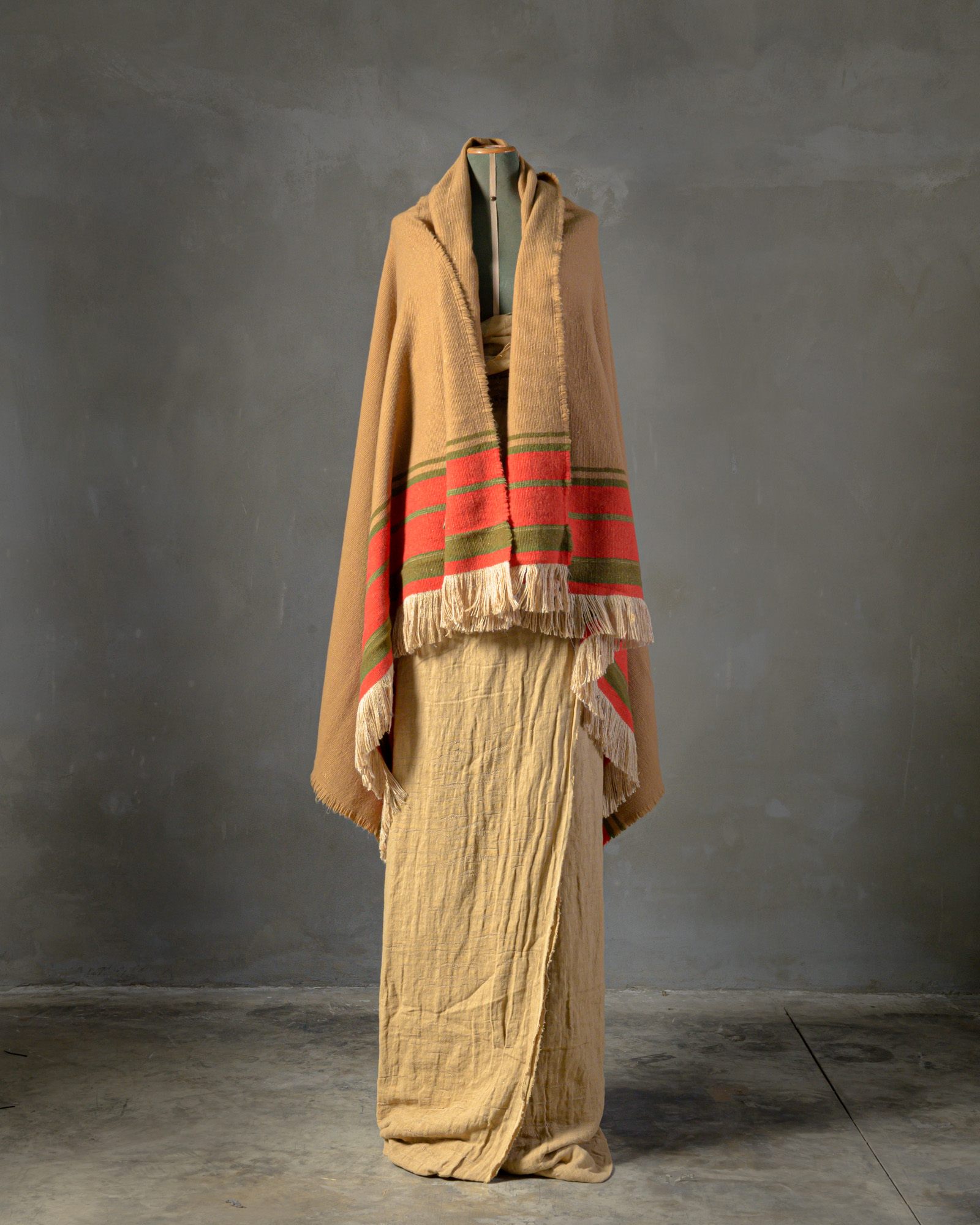 The slight tactile irregularities are the result of the dialogue between wool and silk.