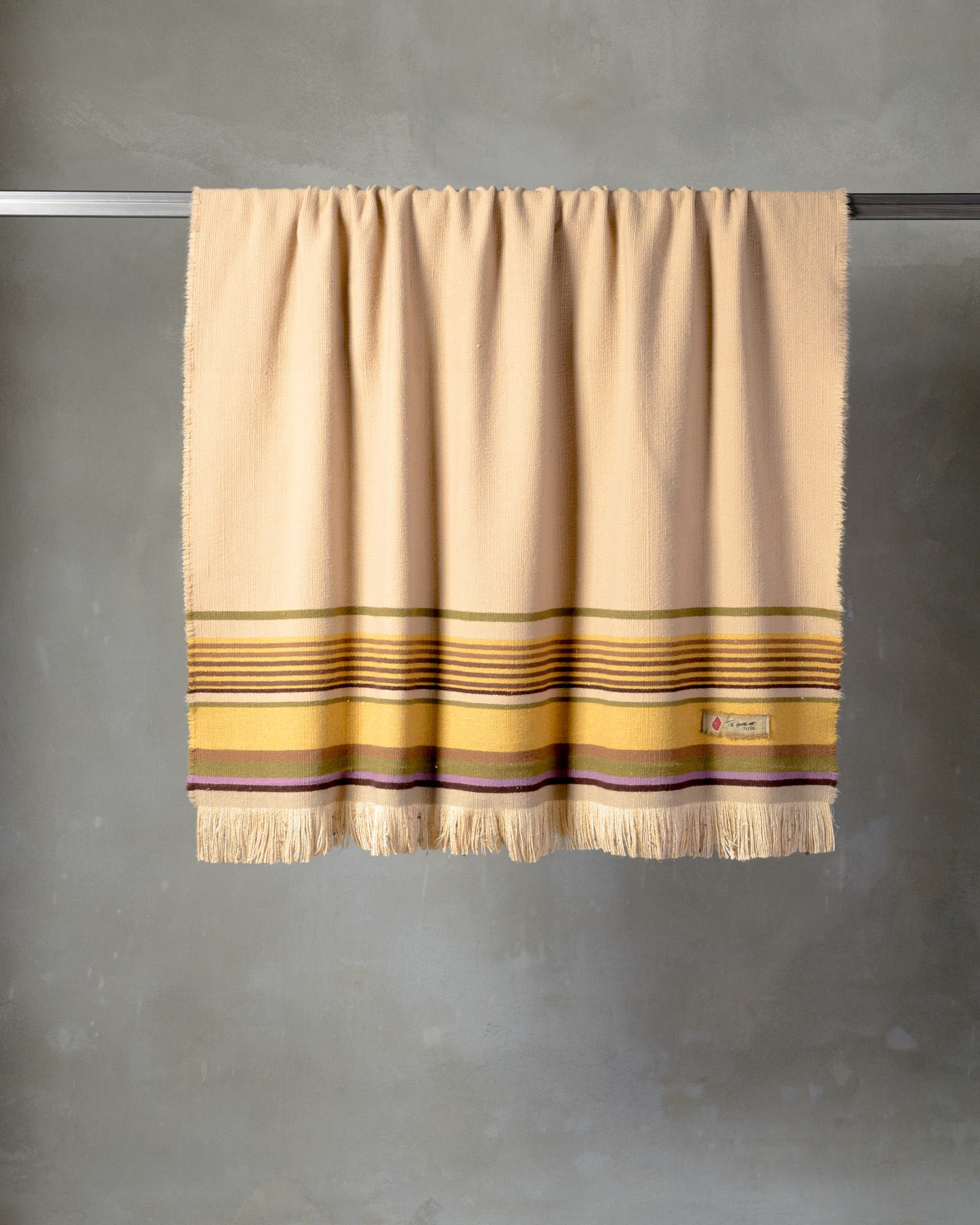Throw in silk and wool. The motif develops across the surface with a refined rhythm, where the material alternates softness and lightness in a harmonious balance. Fluid lines move through the fabric like a continuous dialogue, creating a subtle vibration that unites elegance and depth.