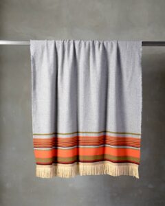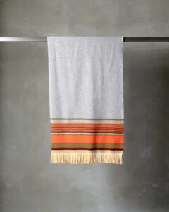 Throw in silk and wool. The motif develops across the surface with a refined rhythm, where the material alternates softness and lightness in a harmonious balance. Fluid lines move through the fabric like a continuous dialogue, creating a subtle vibration that unites elegance and depth.