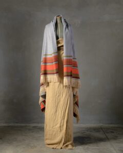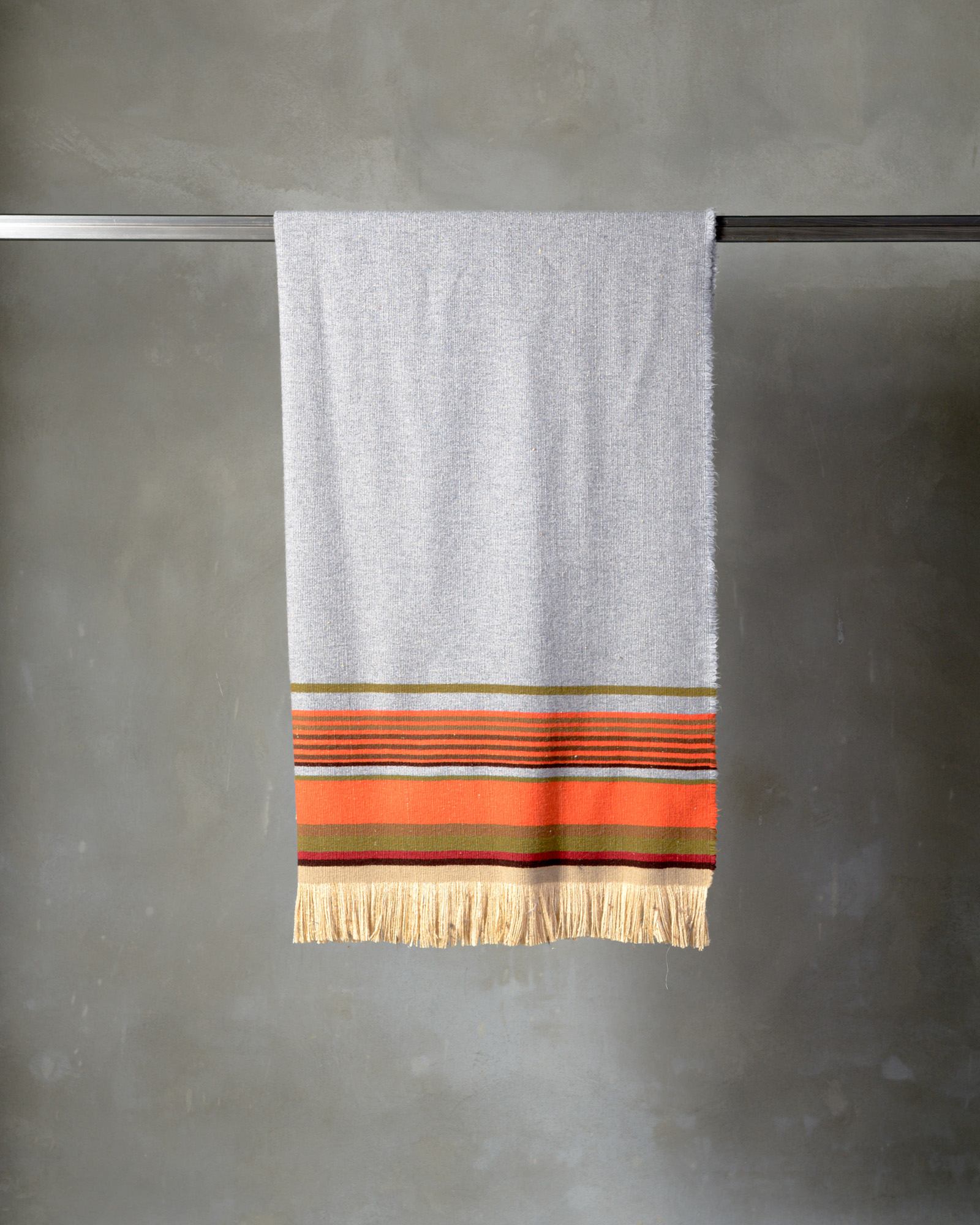 The slight tactile irregularities are the result of the dialogue between wool and silk.