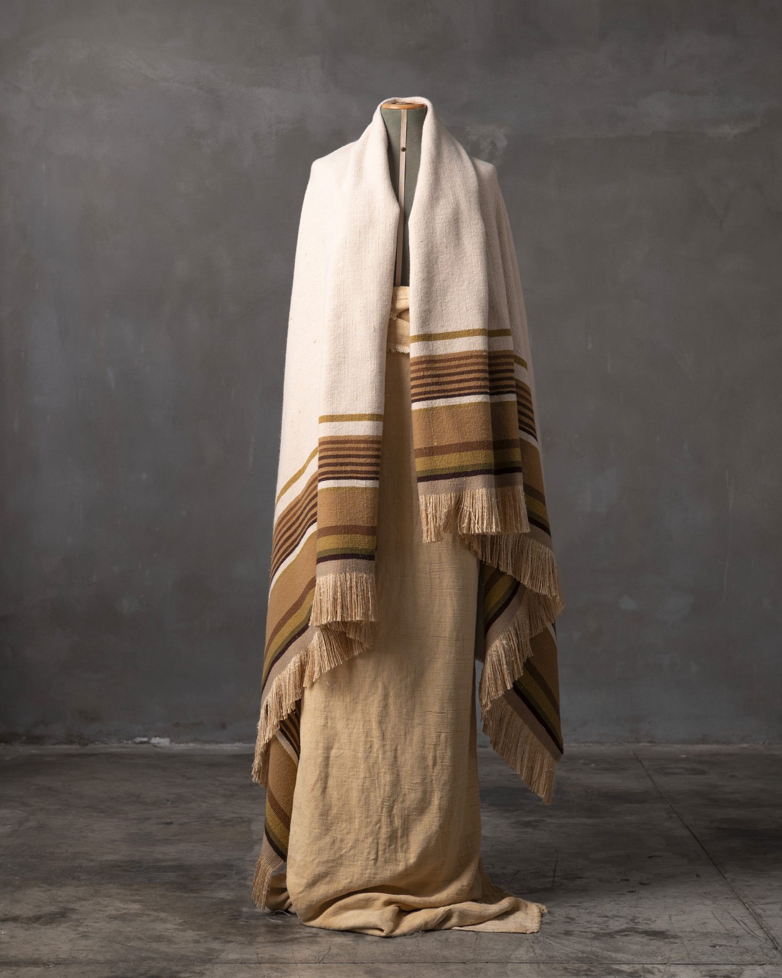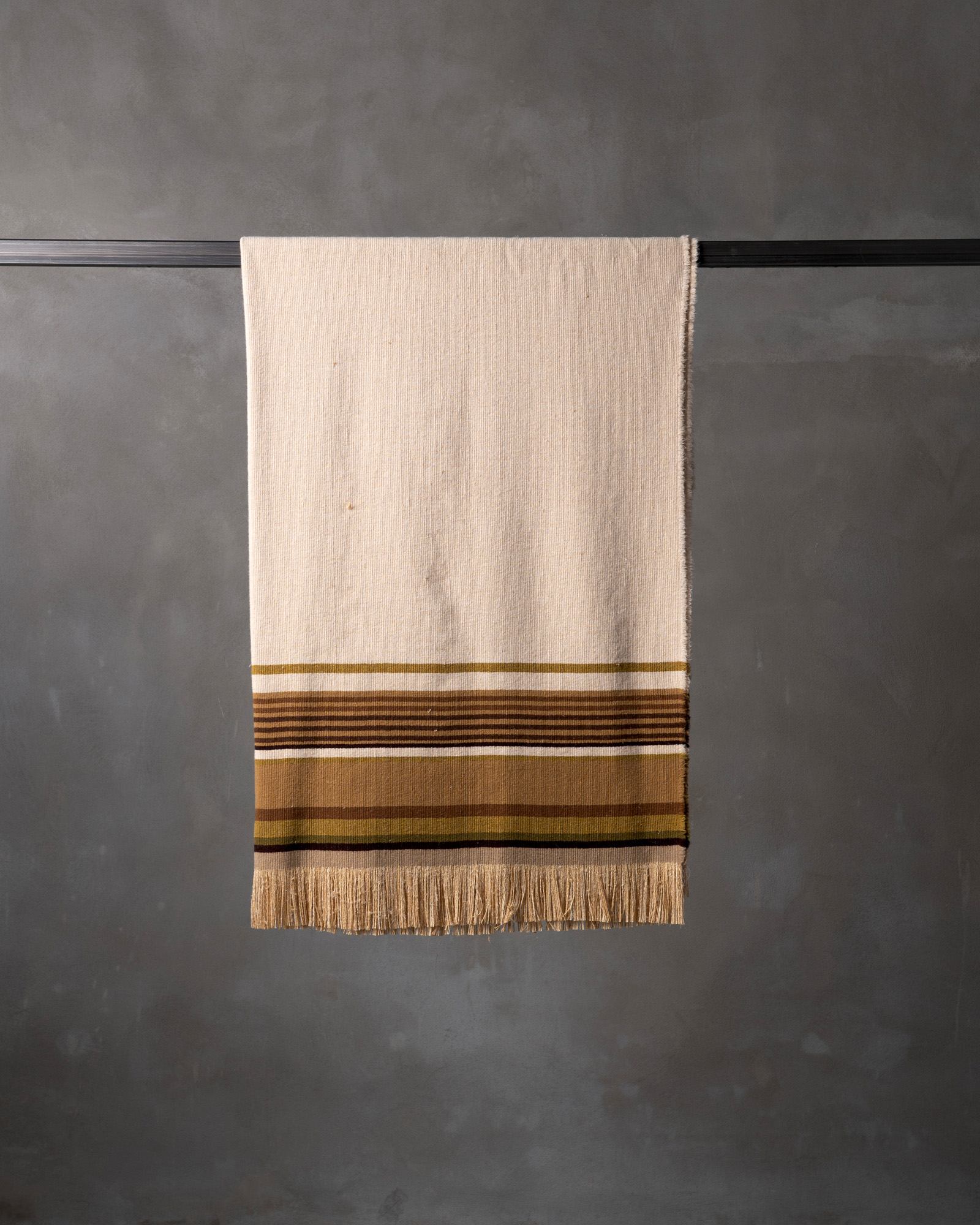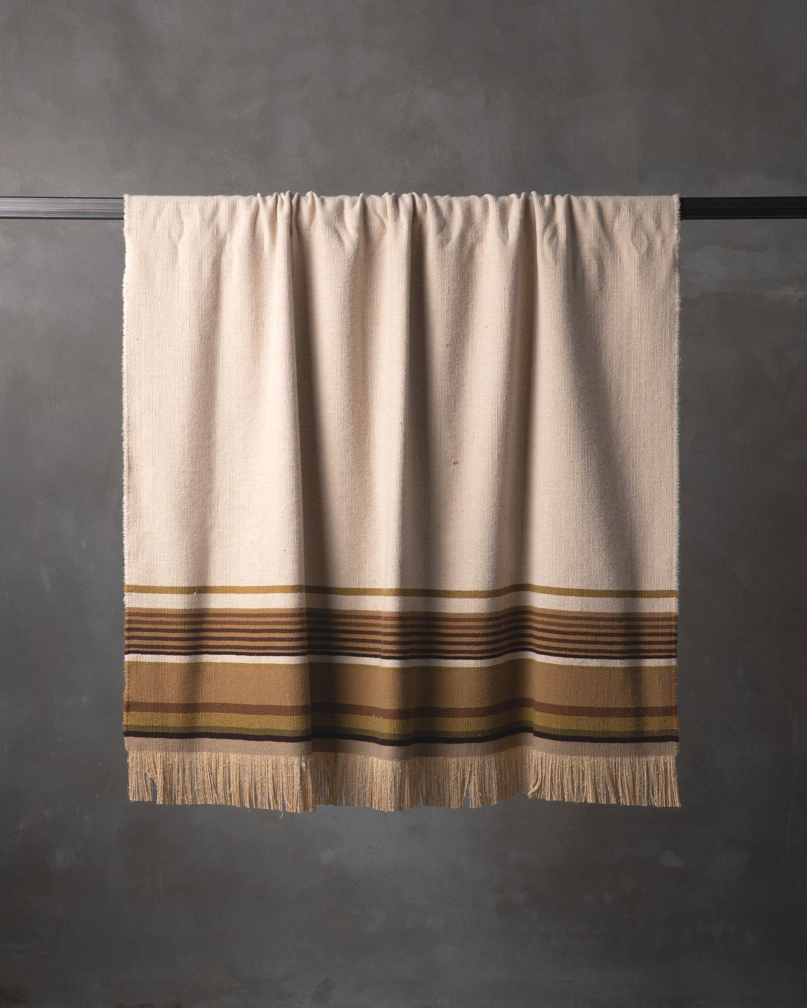 The slight tactile irregularities are the result of the dialogue between wool and silk.