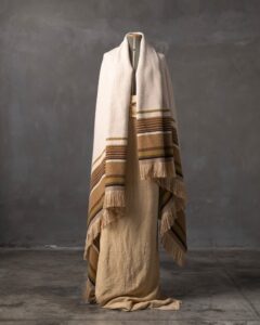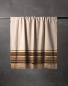 Throw in silk and wool. The motif develops across the surface with a refined rhythm, where the material alternates softness and lightness in a harmonious balance. Fluid lines move through the fabric like a continuous dialogue, creating a subtle vibration that unites elegance and depth.