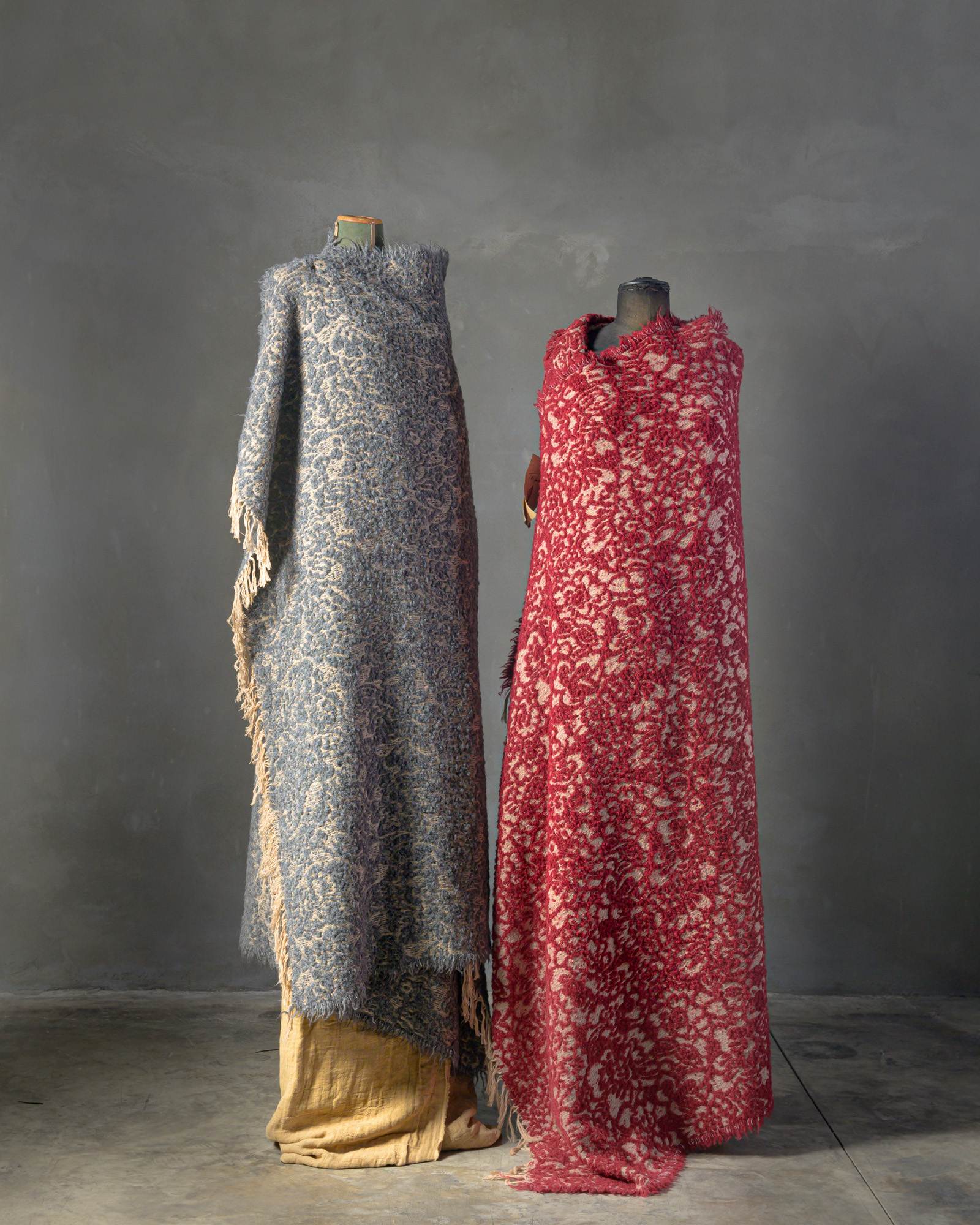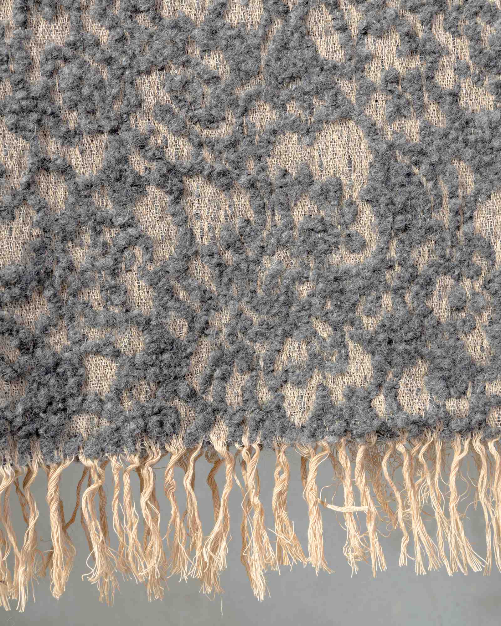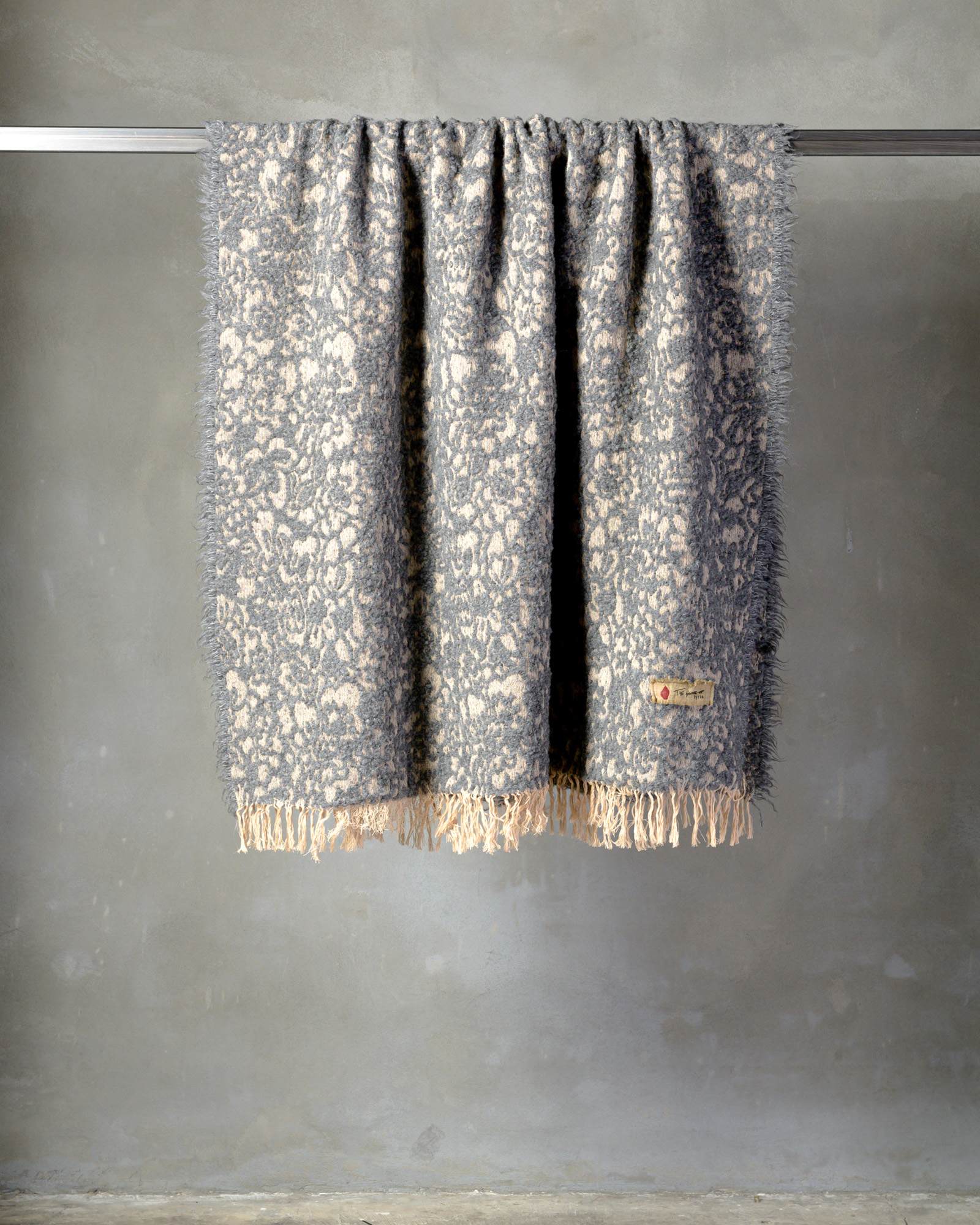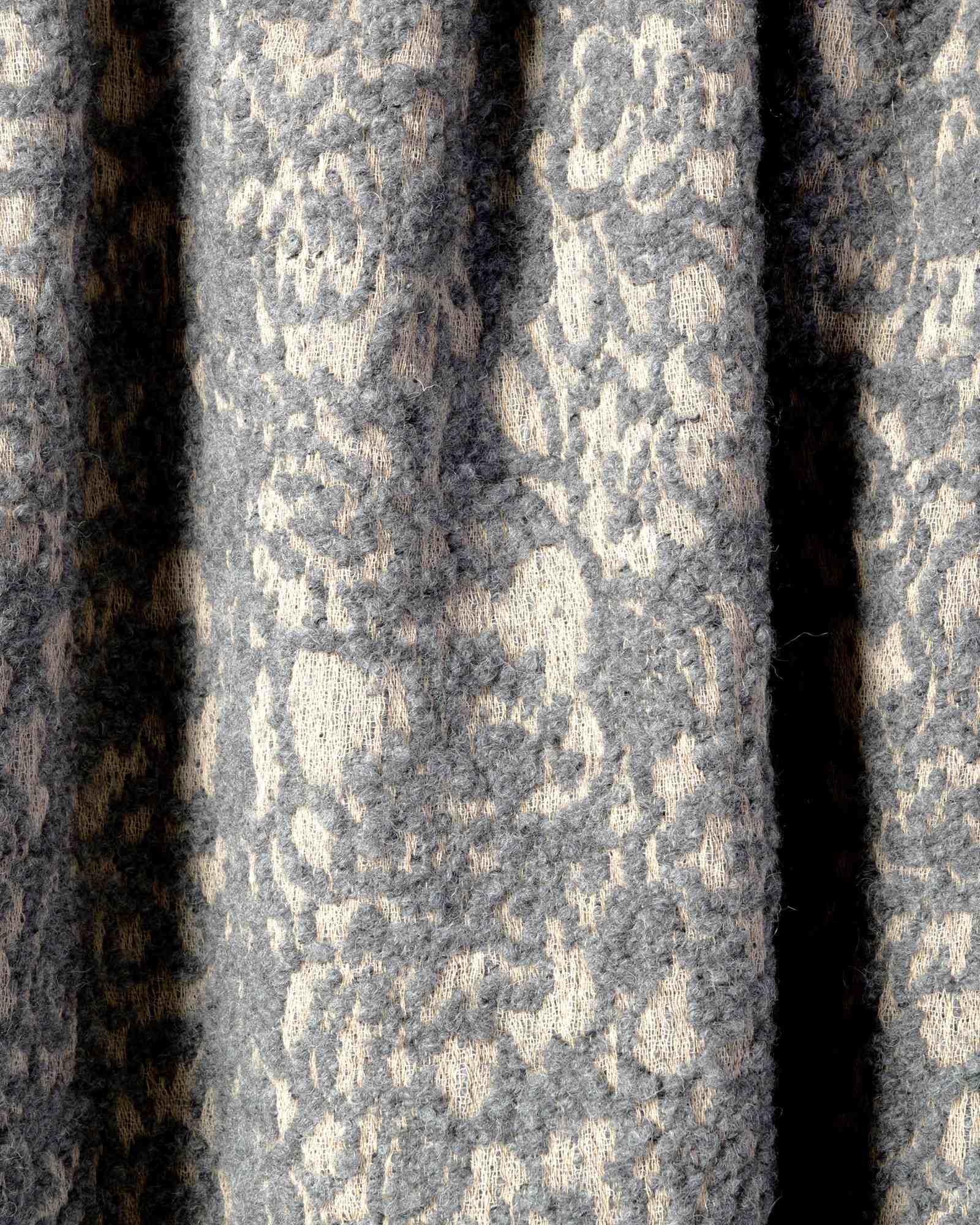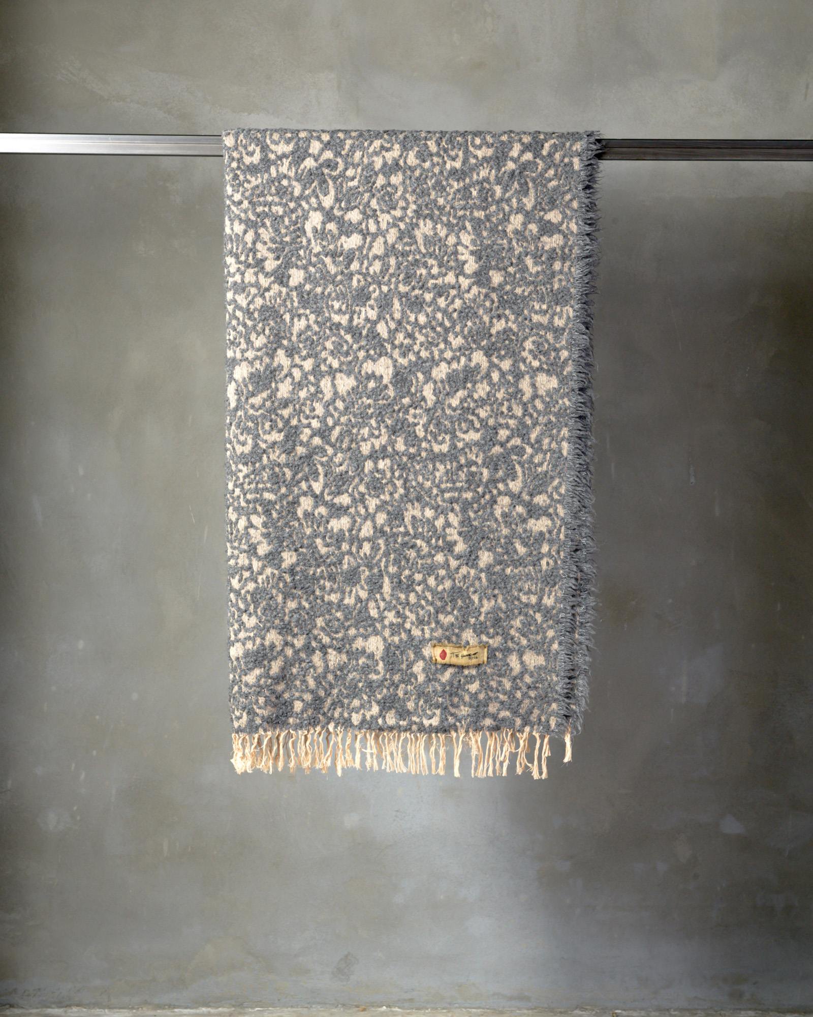 Throw in wool. The rich weave develops with depth, enveloped by a soft material that softens the pattern and reveals only delicate hints of it. The floral motif surfaces like a light shadow, leaving space for a warm and silently enveloping presence.