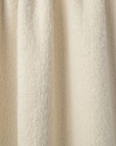 Throw in alpaca. The surface develops uniformly, allowing the full and enveloping softness of the fibre to emerge on both sides. A soft and continuous material that spreads like a silent light, enveloping the space in a warm and rarefied presence.