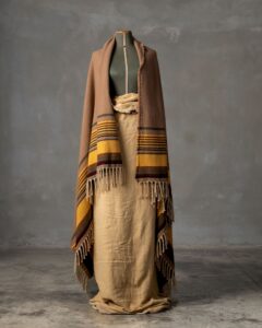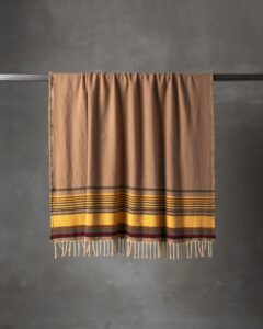 Throw in cashmere and silk. The striped pattern develops across the surface with decisive rhythm, while the material unites softness and luminosity in a refined balance. Continuous lines move through the fabric like an ordered landscape, evoking a timeless elegance suspended between naturalness and measure.