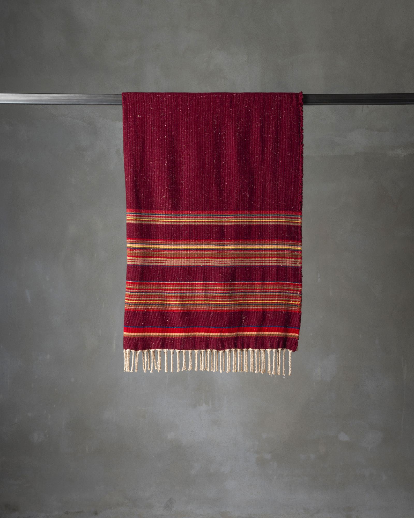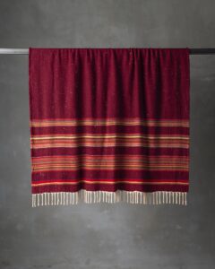 Throw in cashmere and silk. The striped pattern develops across the surface with decisive rhythm, while the material unites softness and luminosity in a refined balance. Continuous lines move through the fabric like an ordered landscape, evoking a timeless elegance suspended between naturalness and measure.