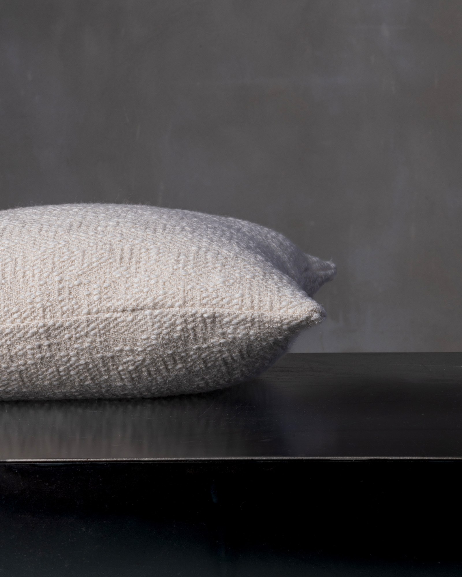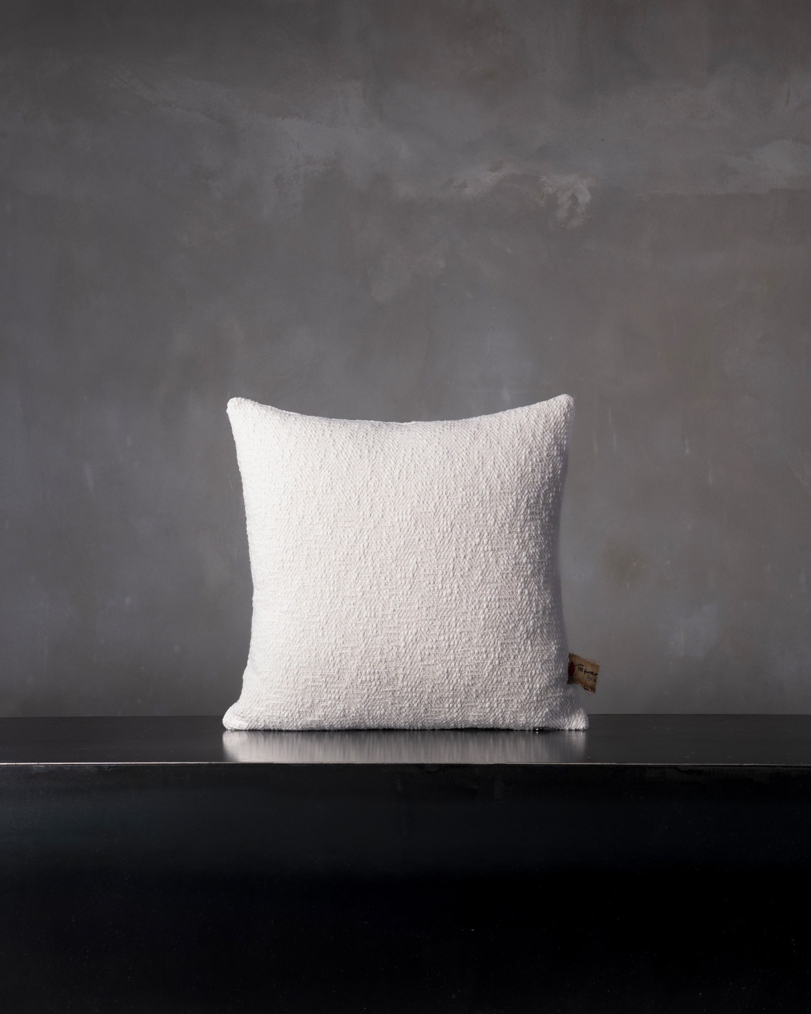Decorative cushion in cotton. The natural weave expresses itself through a material and granular surface, where the fibre reveals its own authenticity with simplicity and measure. A light and airy presence, like a summer breath moving through the space with silent naturalness.