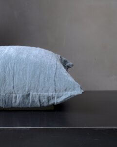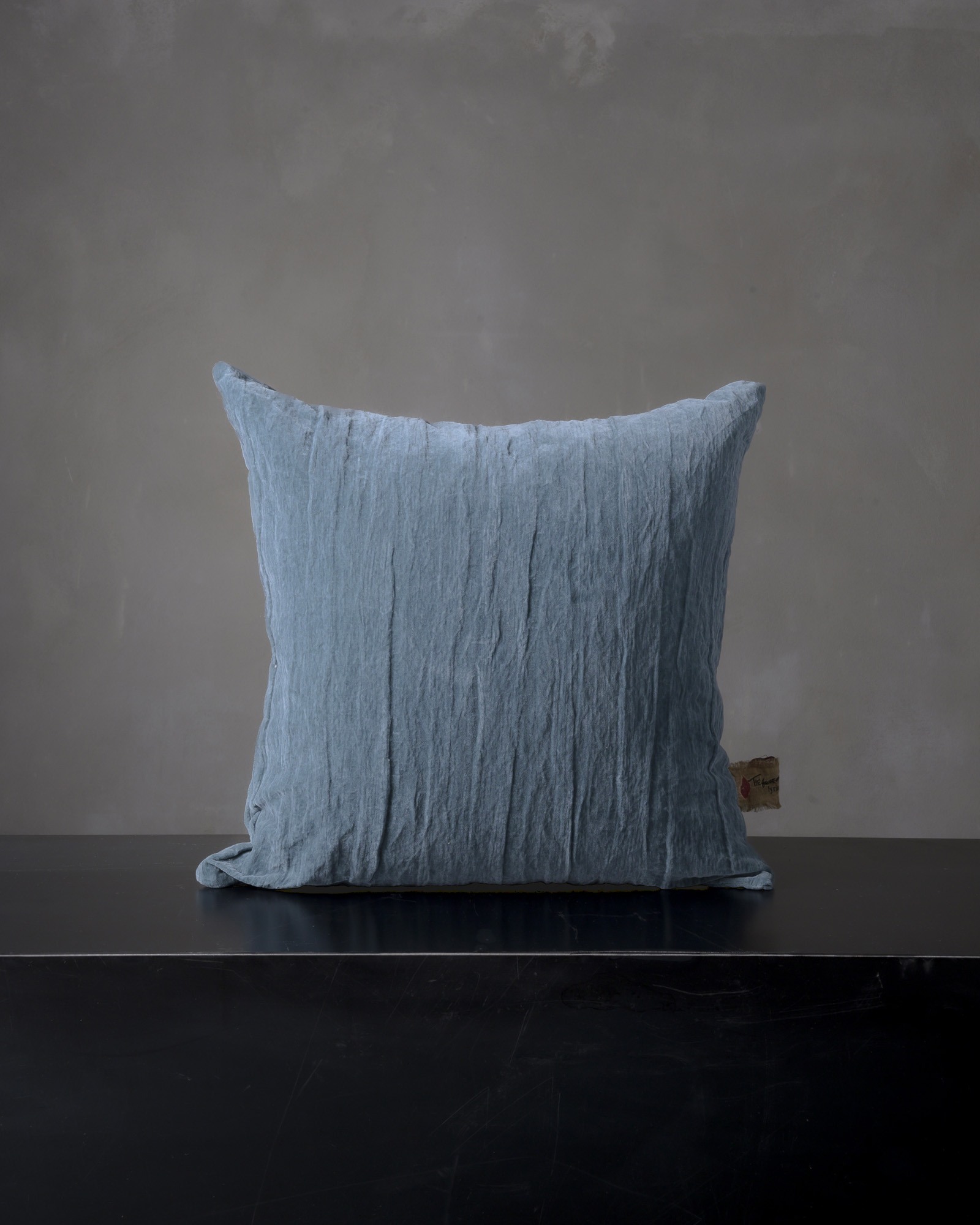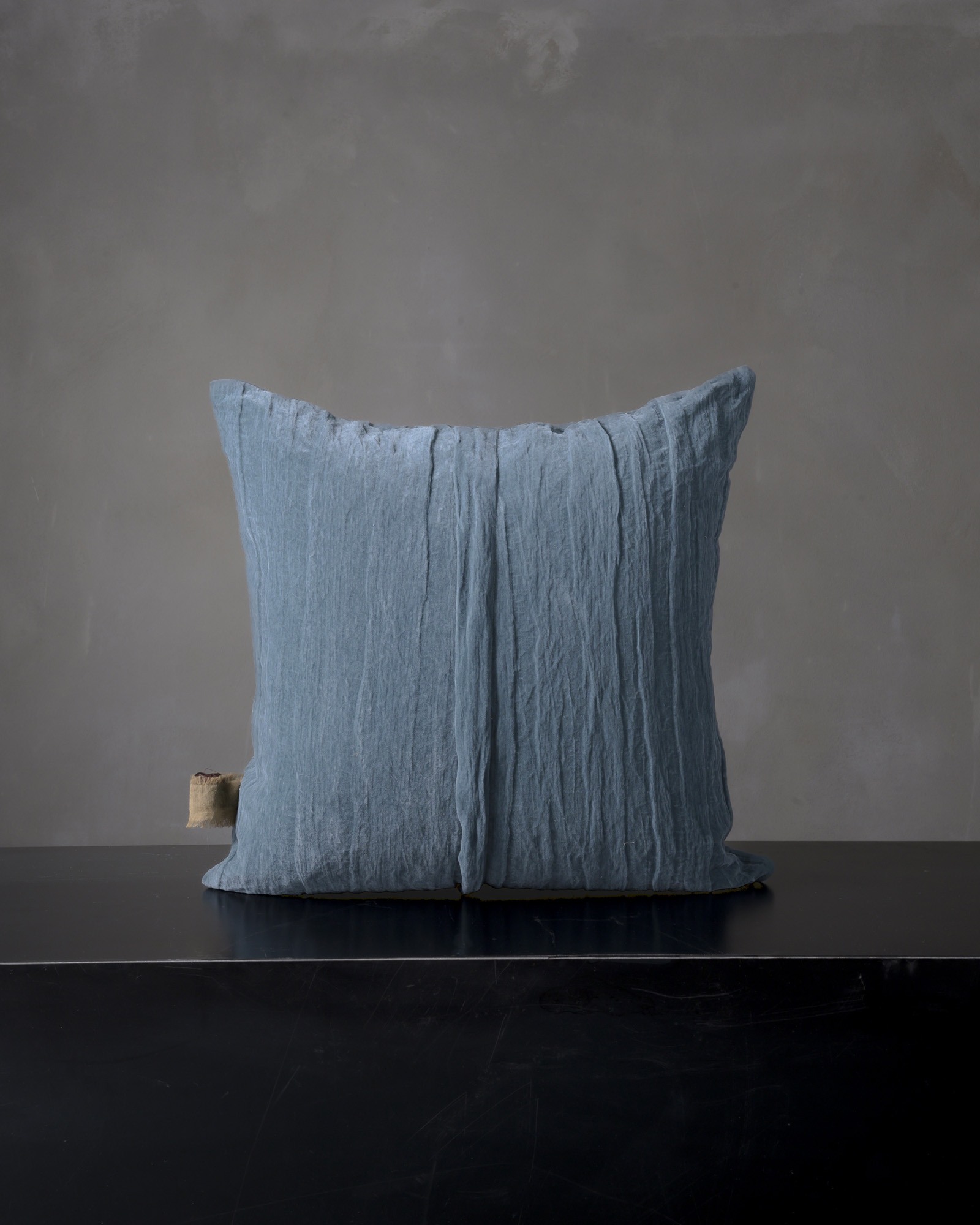 Decorative cushion in cotton and metallic fibres. The graphic motif defines itself with decisiveness on the compact surface, while the wave-like movement of the velvet generates a continuous and luminous vibration. The material comes alive as if traversed by a fluid energy, that changes and reflects with discreet intensity.