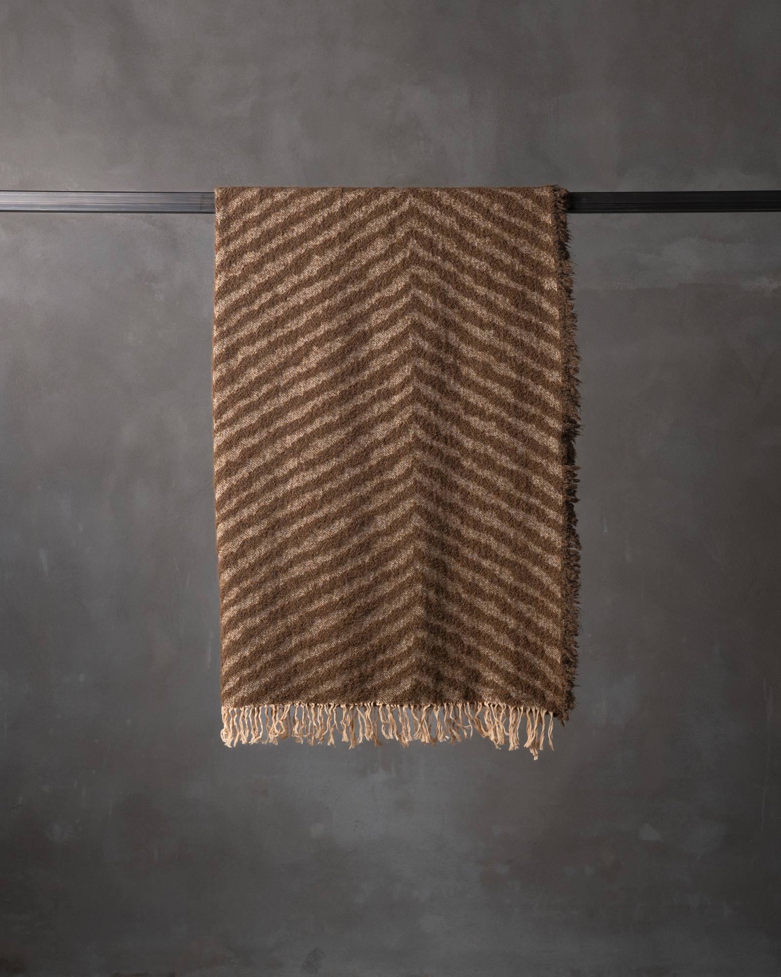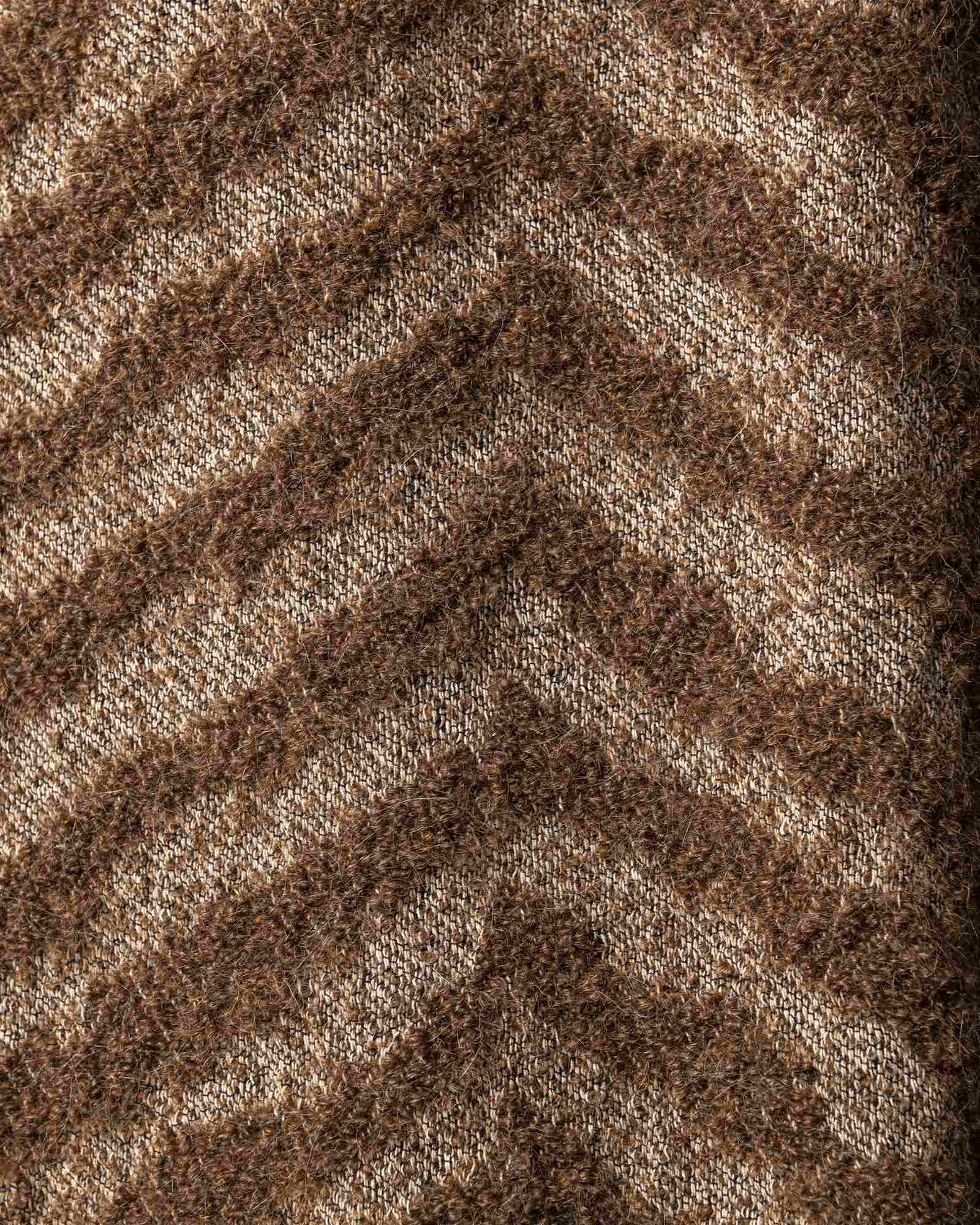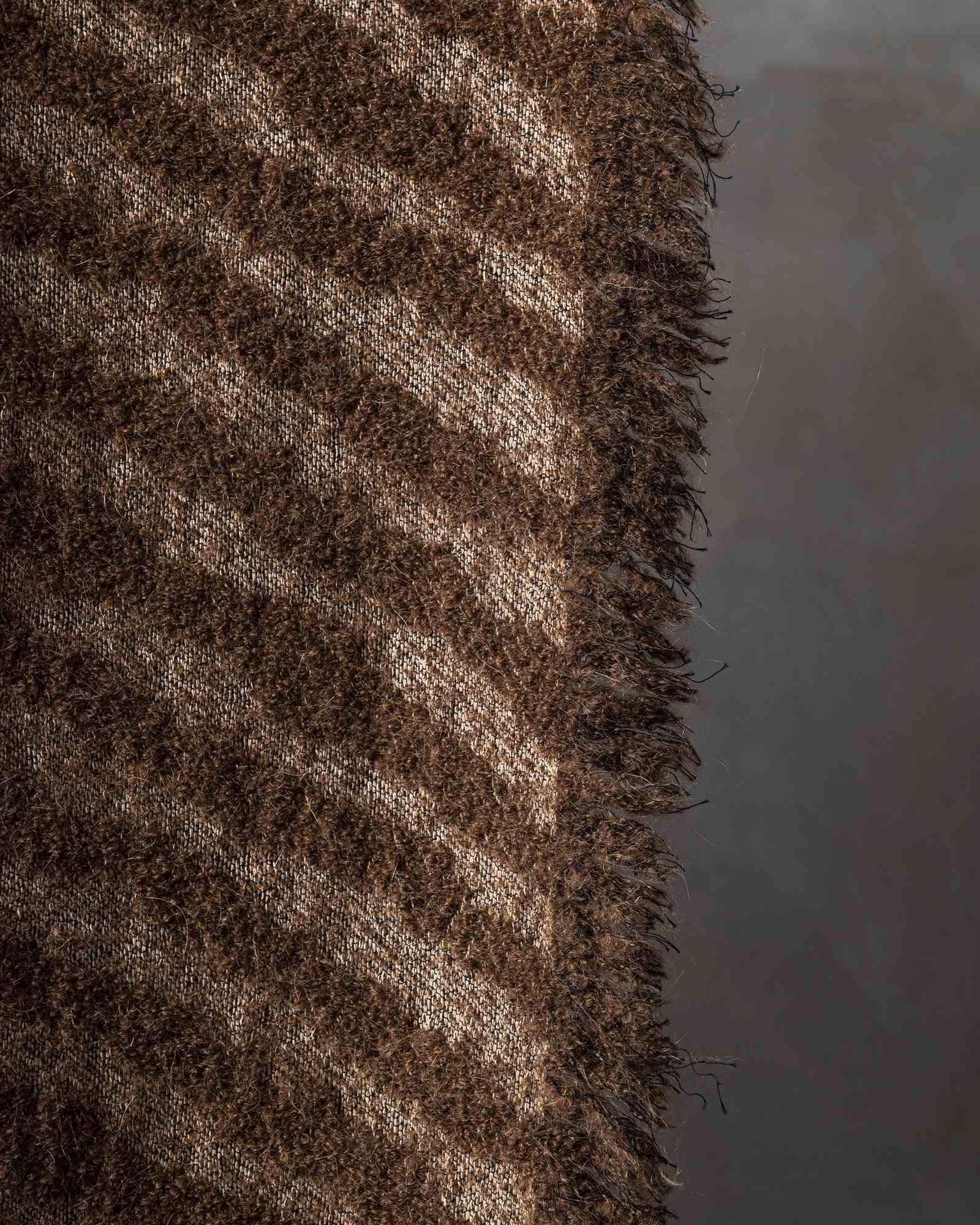 Throw in cotton and mohair. The compact surface develops with depth and softness, where the material builds a balance between structure and tactile warmth. A soft veil moves through the fabric, like a silent presence that lends character and intensity with natural elegance.
