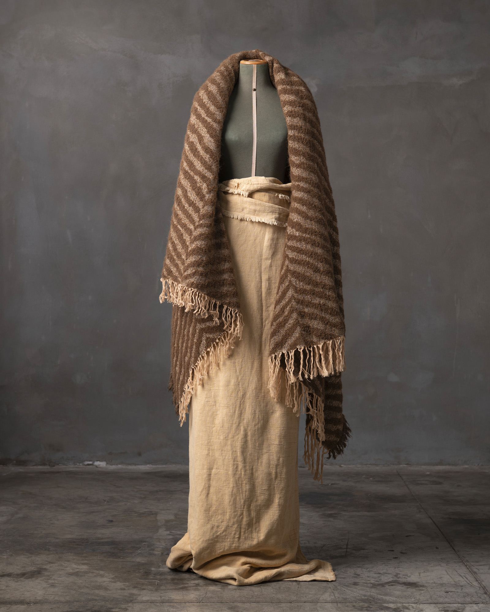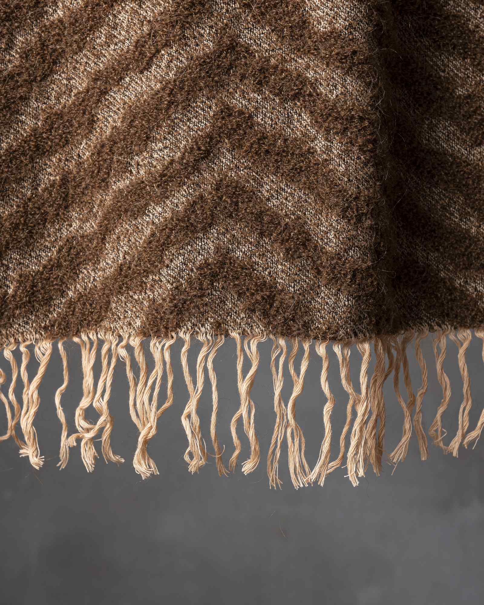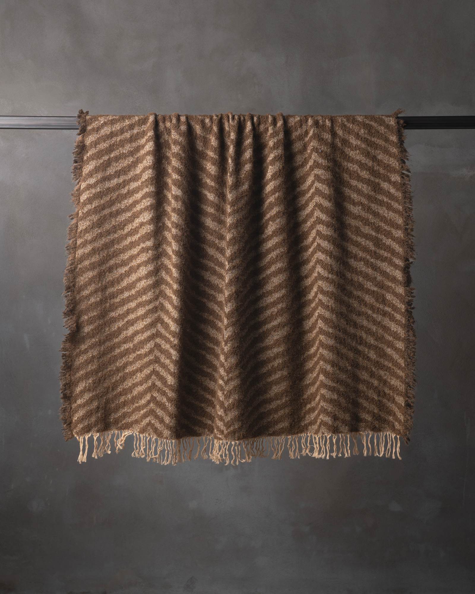 Throw in cotton and mohair. The compact surface develops with depth and softness, where the material builds a balance between structure and tactile warmth. A soft veil moves through the fabric, like a silent presence that lends character and intensity with natural elegance.