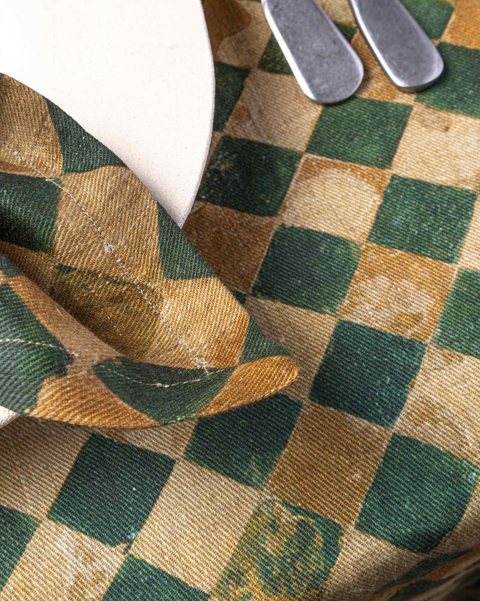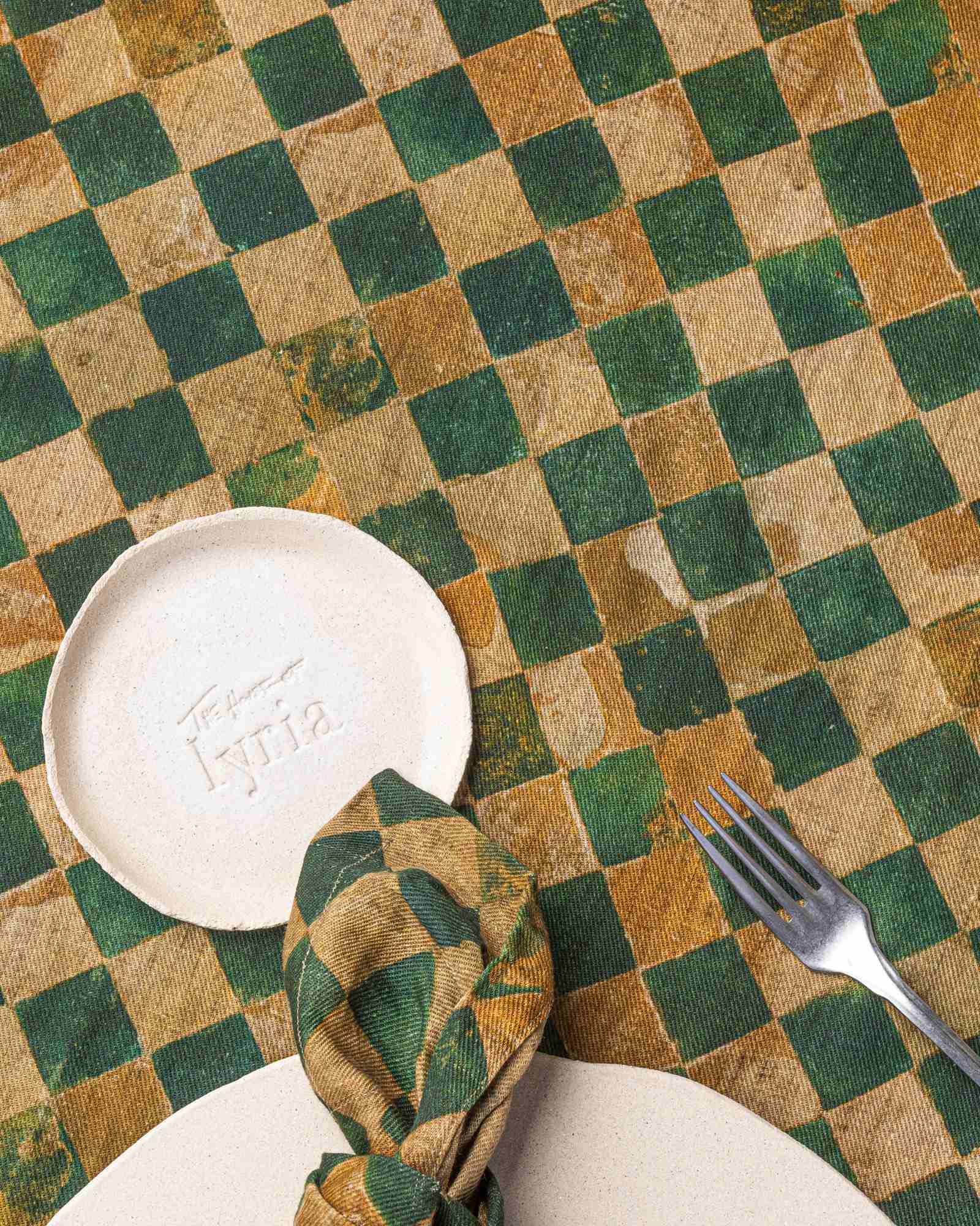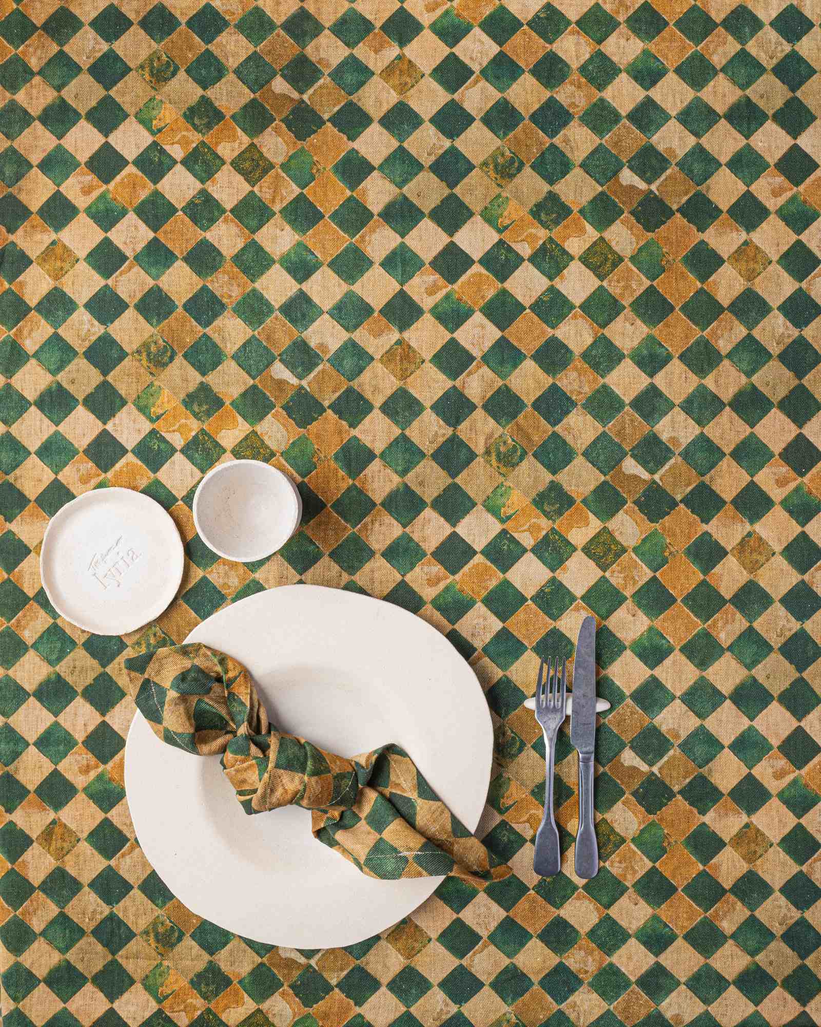Tablecloth in linen. The surface develops with lightness, receiving a pattern that recalls the structure of a mosaic, softened in the material by irregular and deep nuances. Fragments compose themselves like ancient traces, creating a silent rhythm that moves through the space with natural intensity.