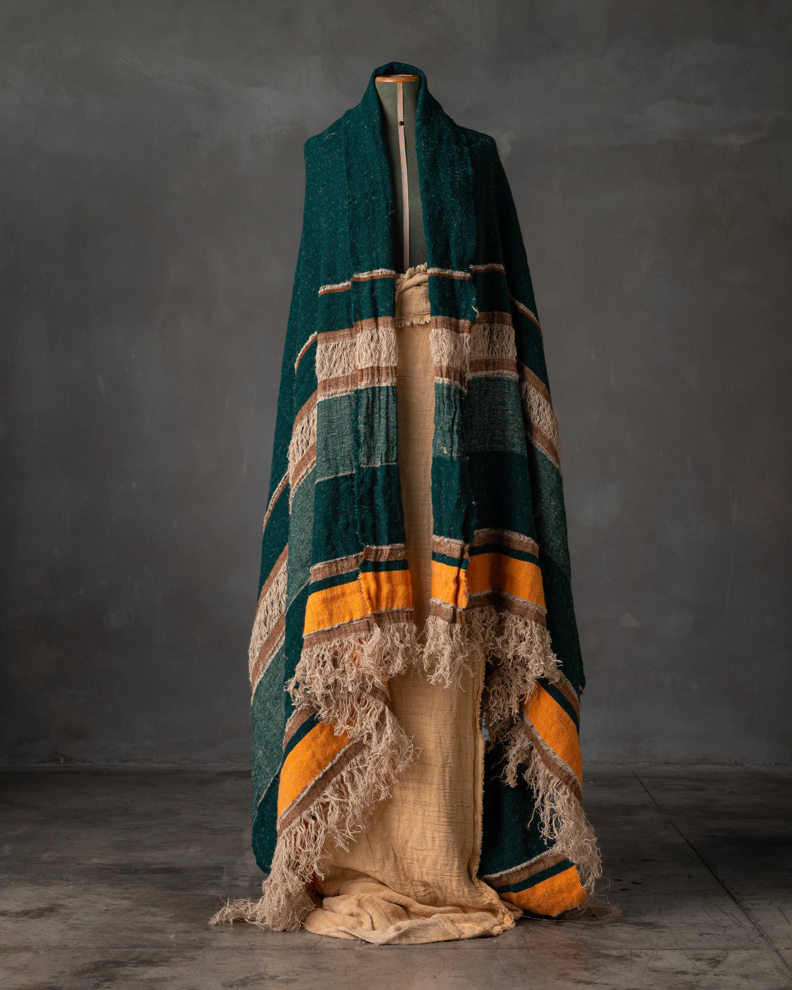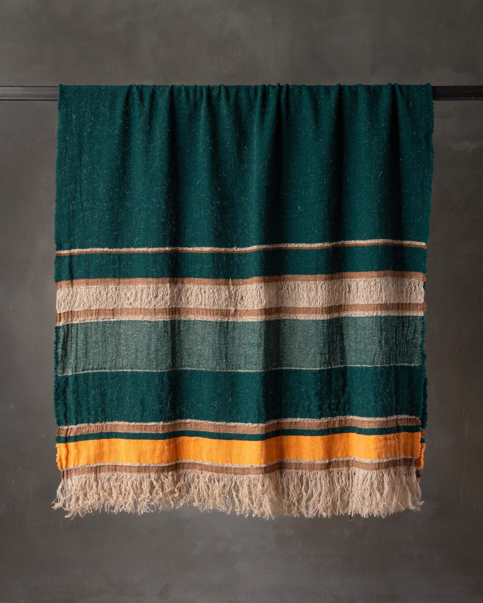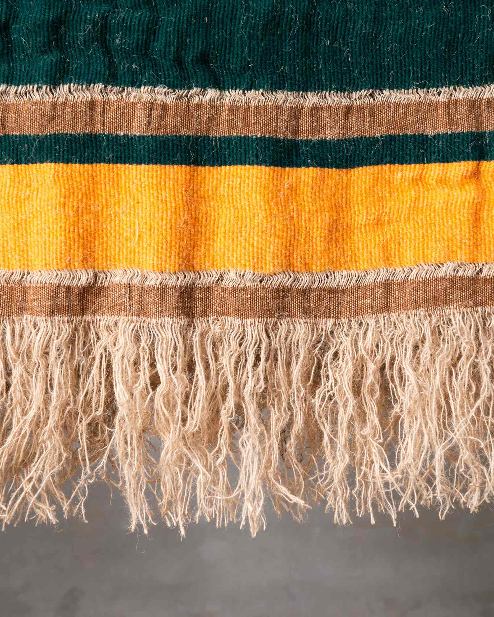 Throw in jute and wool. The structured pattern traverses the surface with decisive rhythm, building a compact material where the fibre alternates character and softness. Marked lines follow one another like essential traces, defining an intense and deeply balanced graphic presence.