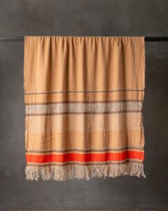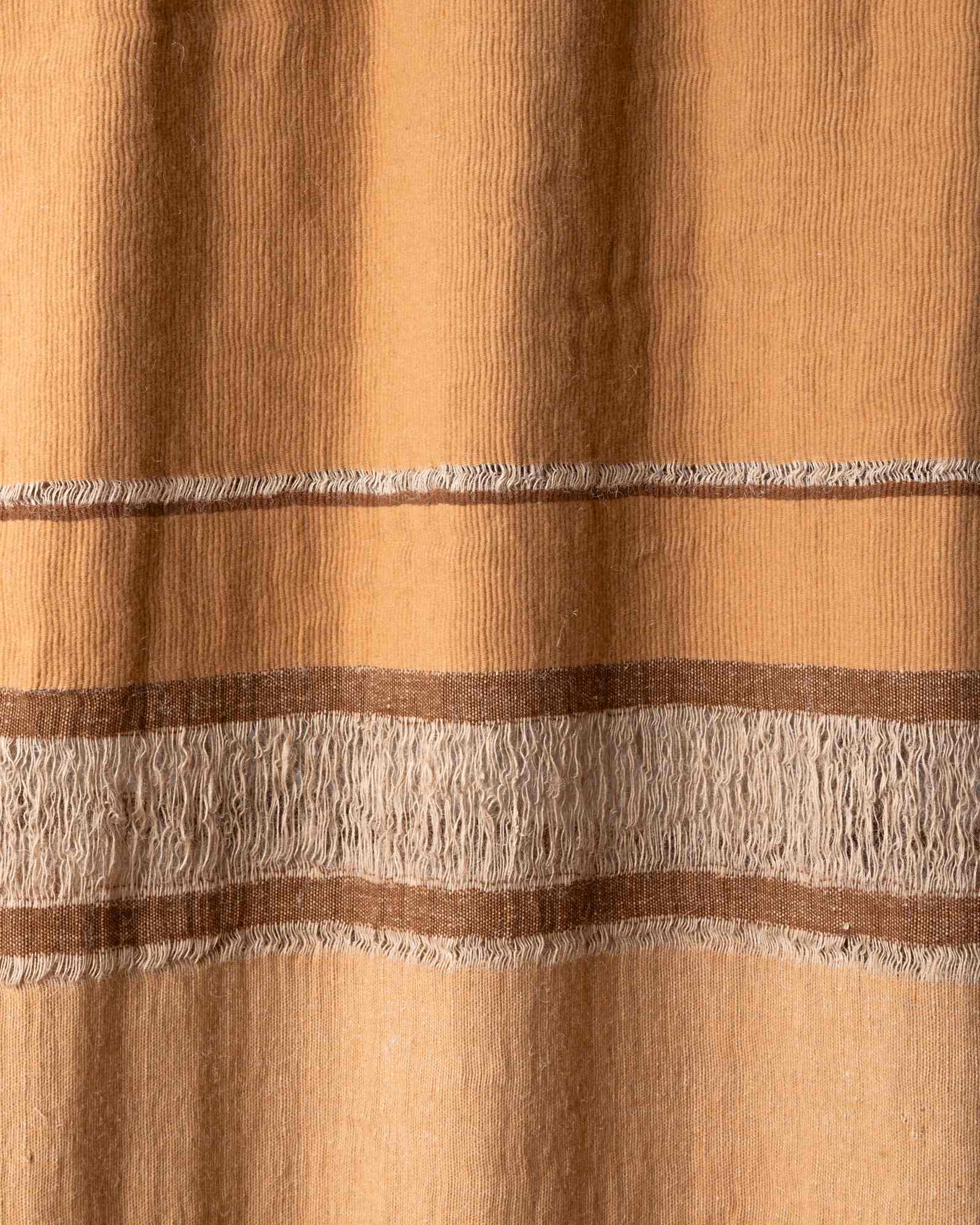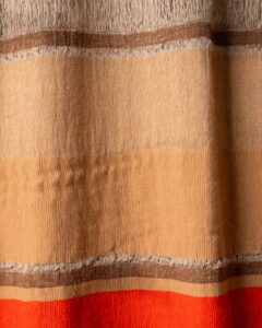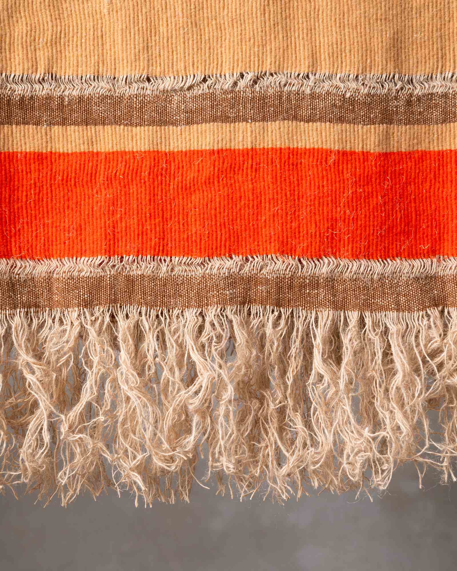 Throw in jute and wool. The structured pattern traverses the surface with decisive rhythm, building a compact material where the fibre alternates character and softness. Marked lines follow one another like essential traces, defining an intense and deeply balanced graphic presence.