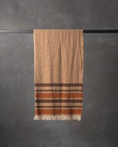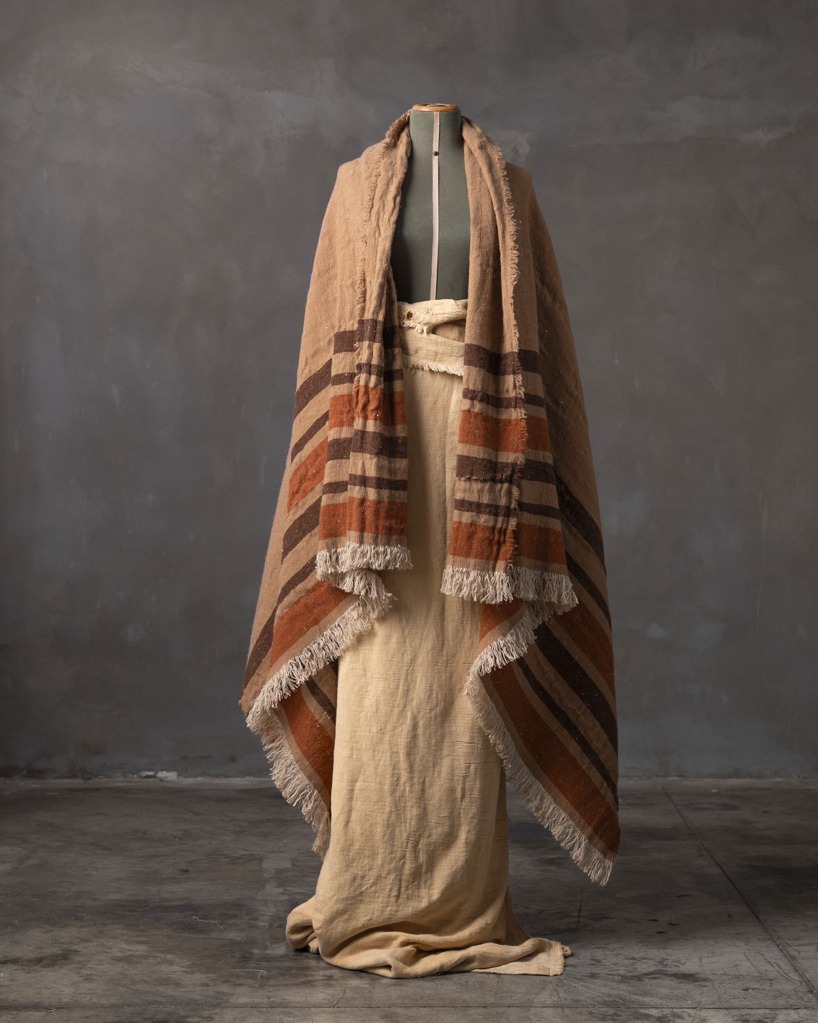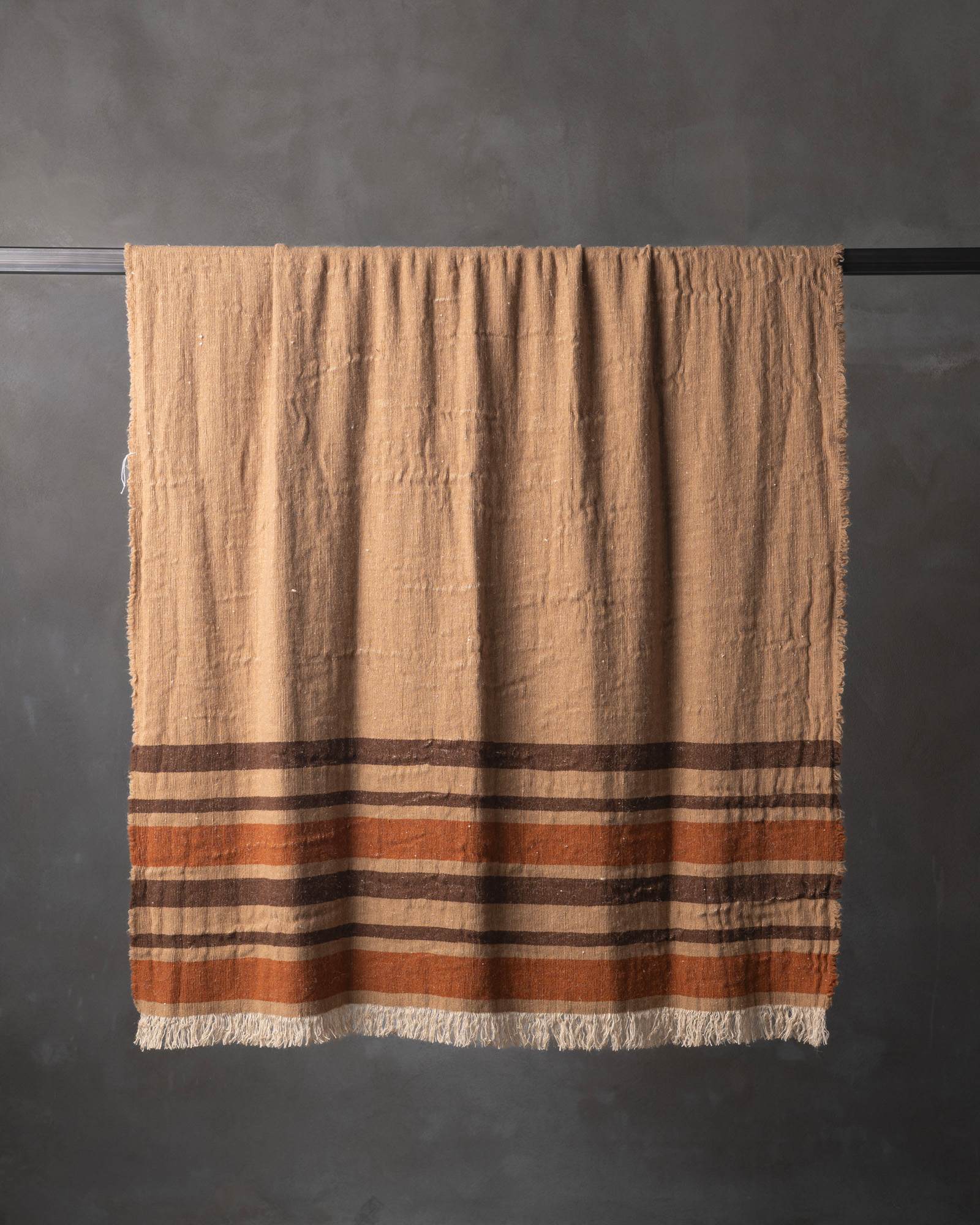 Throw in jute and wool. The graphic motif develops across the surface with decisive rhythm, while the rich weave builds a dense and enveloping material. Essential lines follow one another like a continuous design, evoking a warm and structured presence that unites strength and natural elegance.