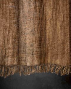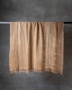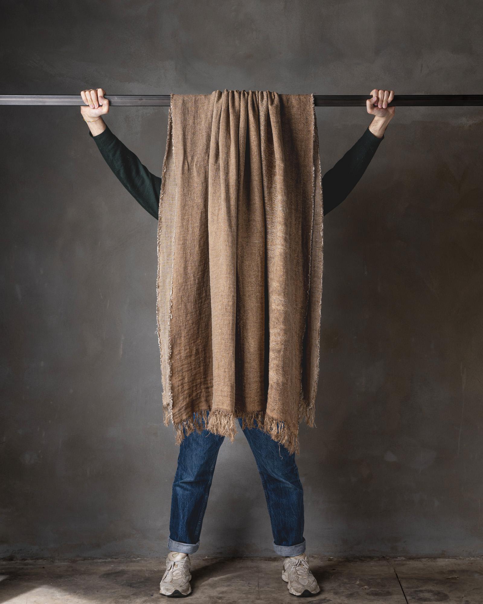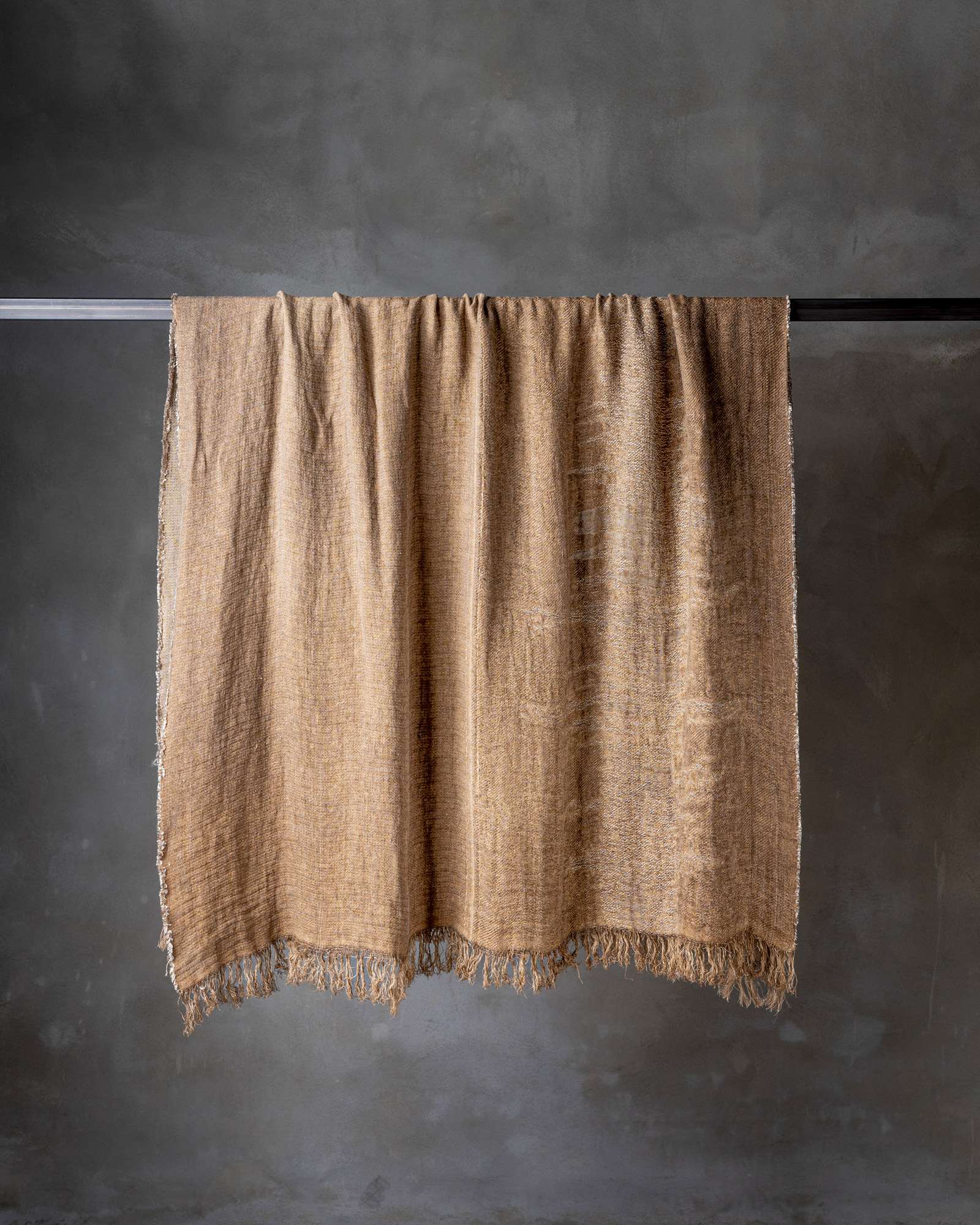 Runner da letto in lino. La superficie si sviluppa con una texture mossa e profonda, dove il disegno di ispirazione berbera emerge con discrezione nella trama. Segni appena percettibili affiorano come tracce leggere, creando una presenza silenziosa che muta con naturale eleganza.