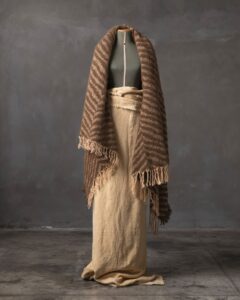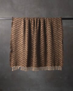 Plaid in cotone e mohair. La superficie compatta si sviluppa con profondità e morbidezza, dove la materia costruisce un equilibrio tra struttura e calore tattile. Un velo soffice attraversa il tessuto, come una presenza silenziosa che dona carattere e intensità con naturale eleganza.